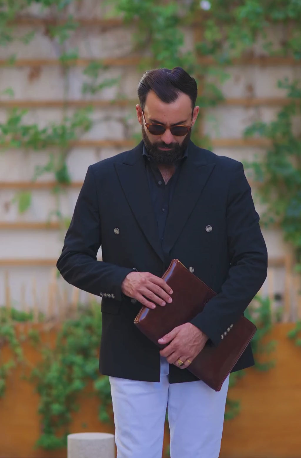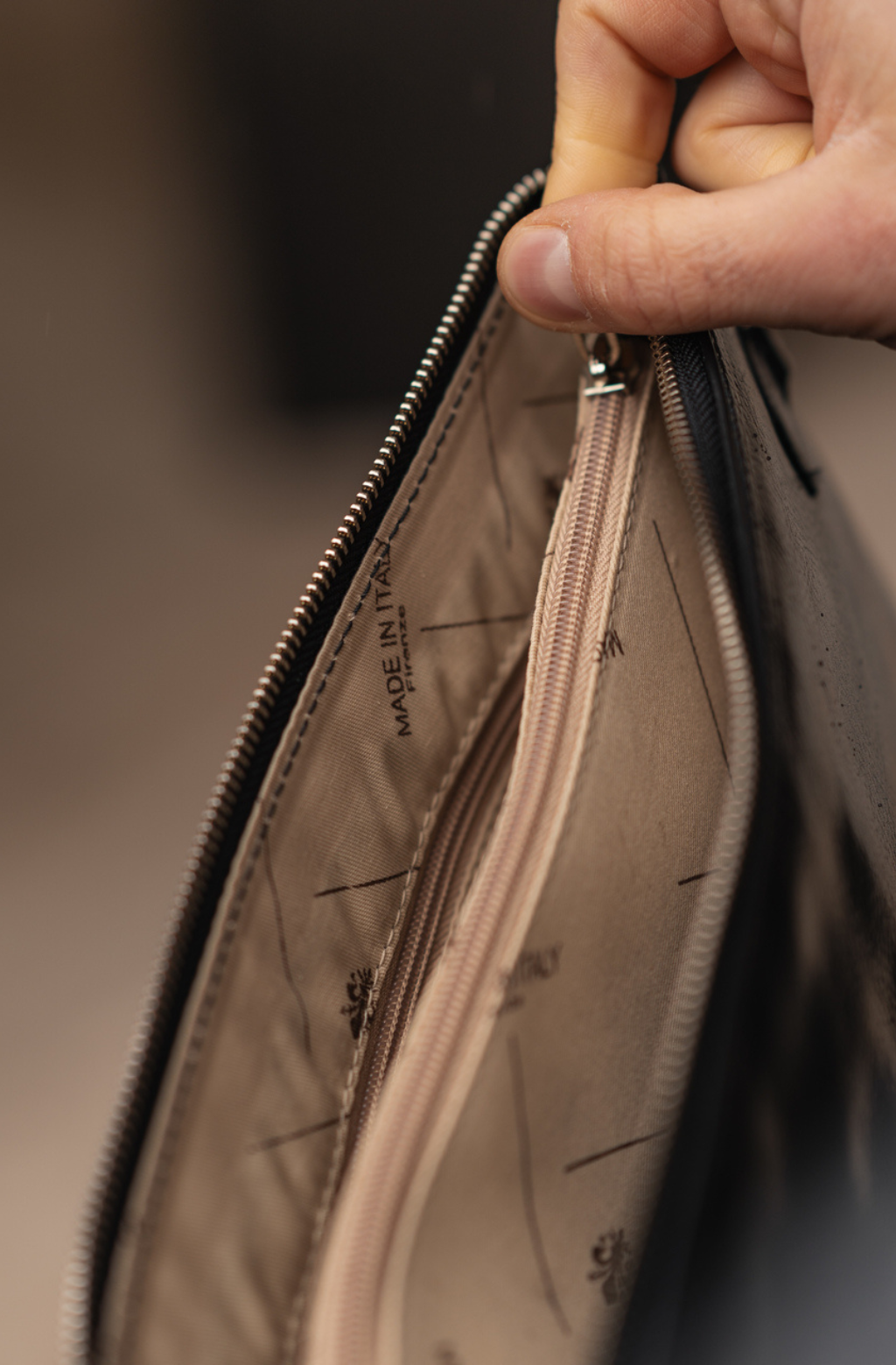 A manly Italian leather clutch purse. Minimalist design, perfect for those who like simplicity without renouncing elegance. It will accommodate all of your daily essentials including smartphone, small tablet, etc. and look all business with a touch of sartorial elegance.