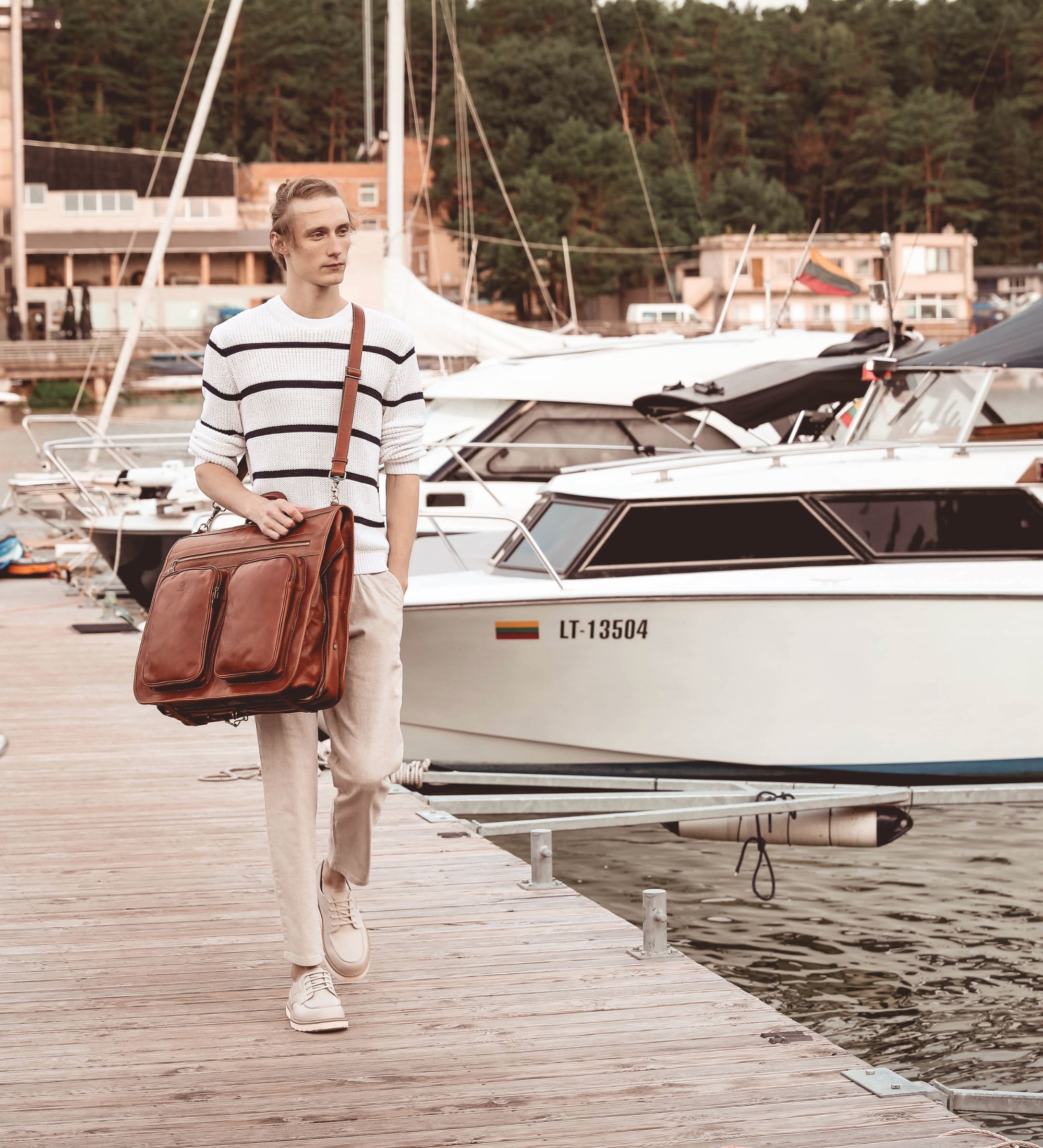 The shipping time was fast - right on time. The quality of the bag (leather and stitching) is good but zippers are average - the zipper action is rough and time will tell if they are durable. The leather and lining are nicely cut and assembled. One unfortunate surprise was the duty fee, which added approximately 15% to the cost of the order.