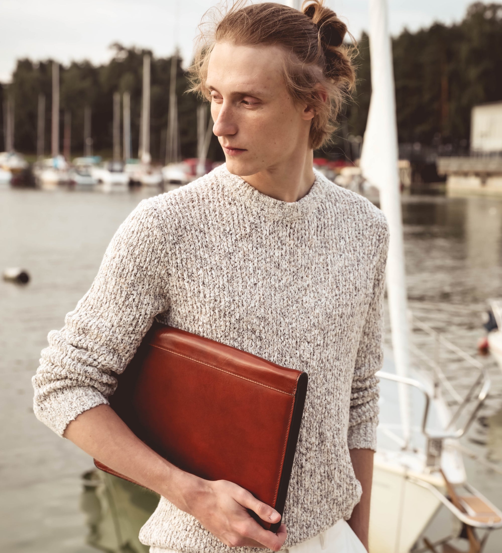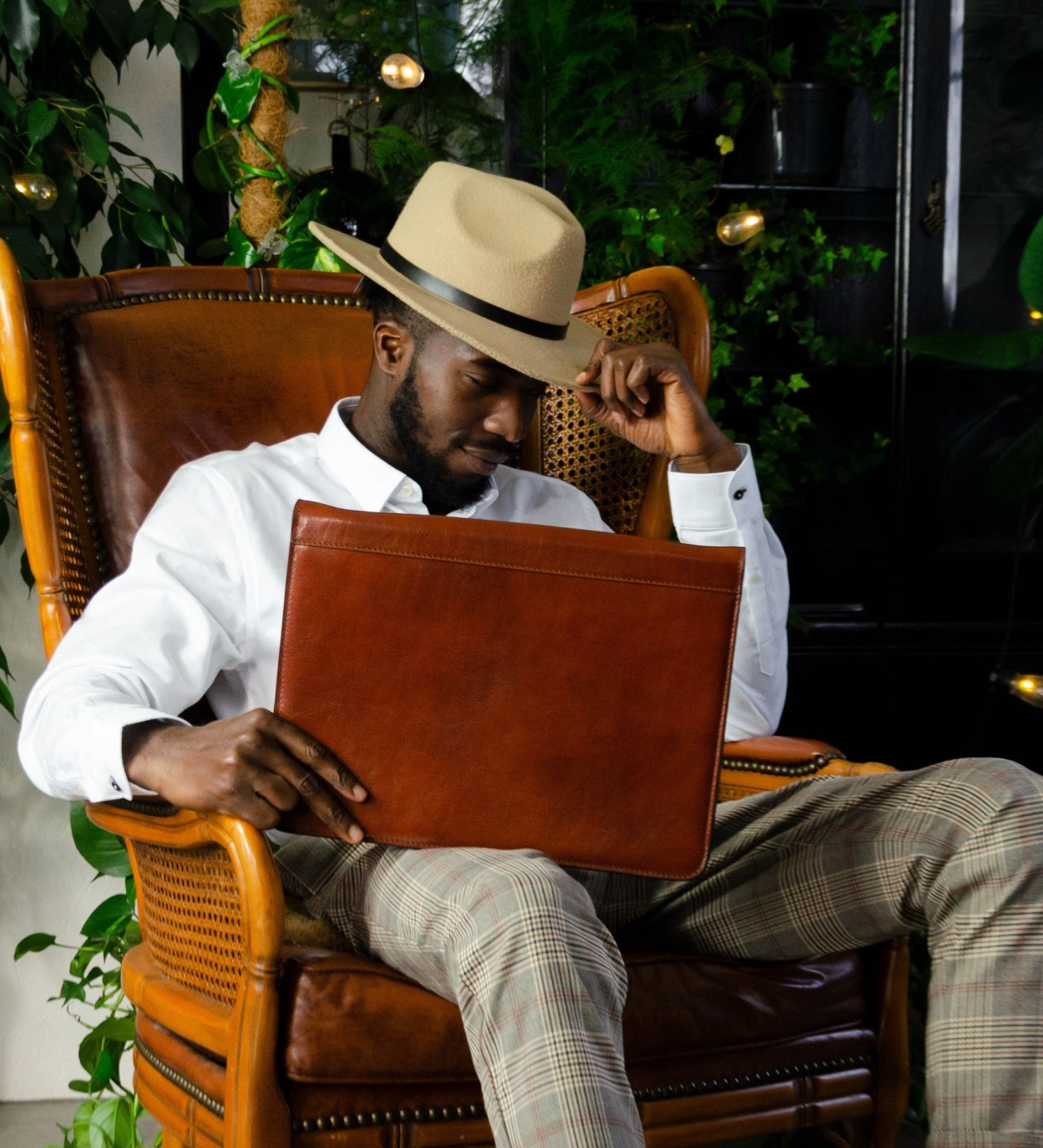 A solid full-grain leather documents folder that will complete a sleek minimalist business look. To organize your files and digital devices but keep a light, effortless chic appearance.