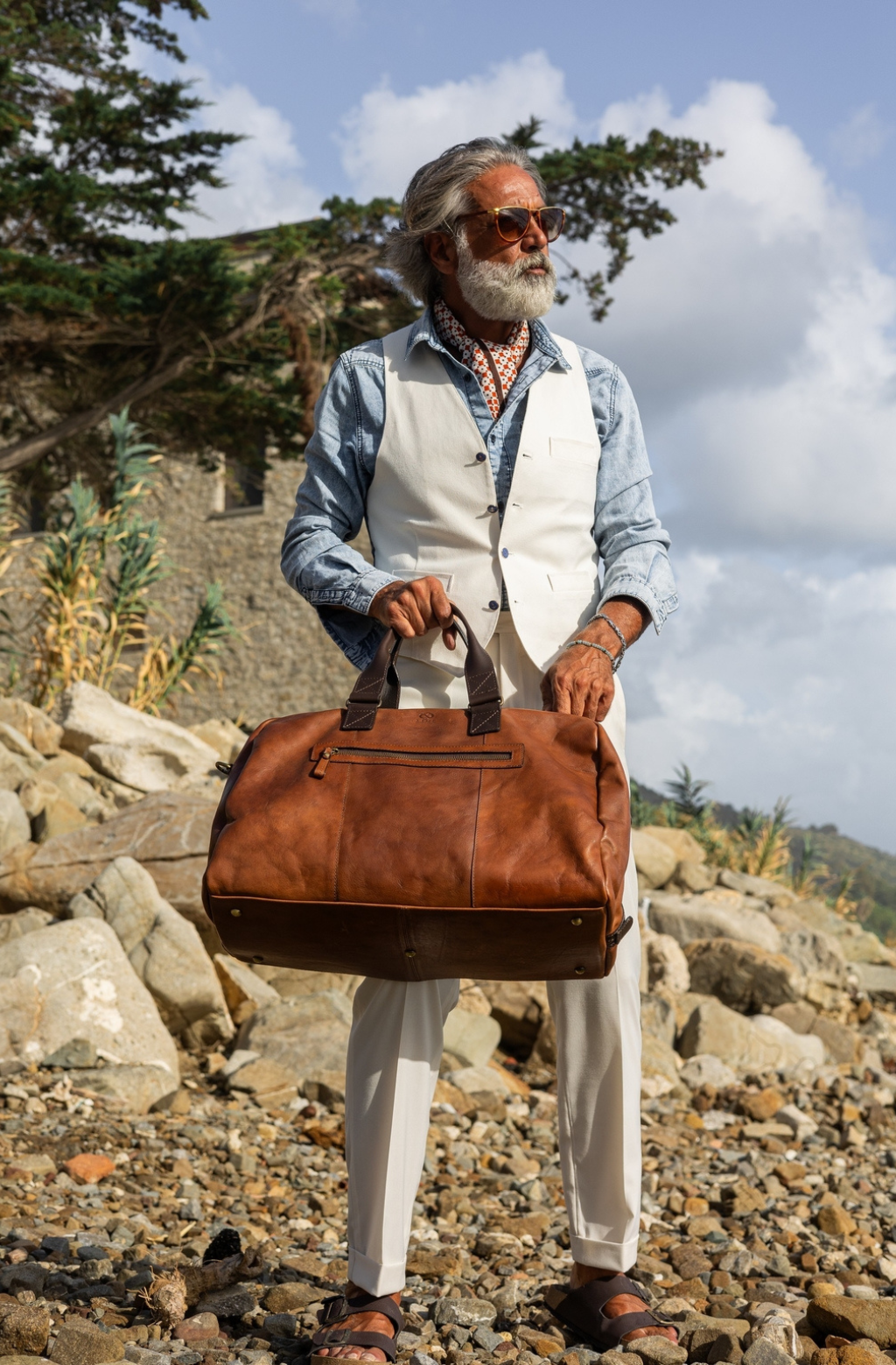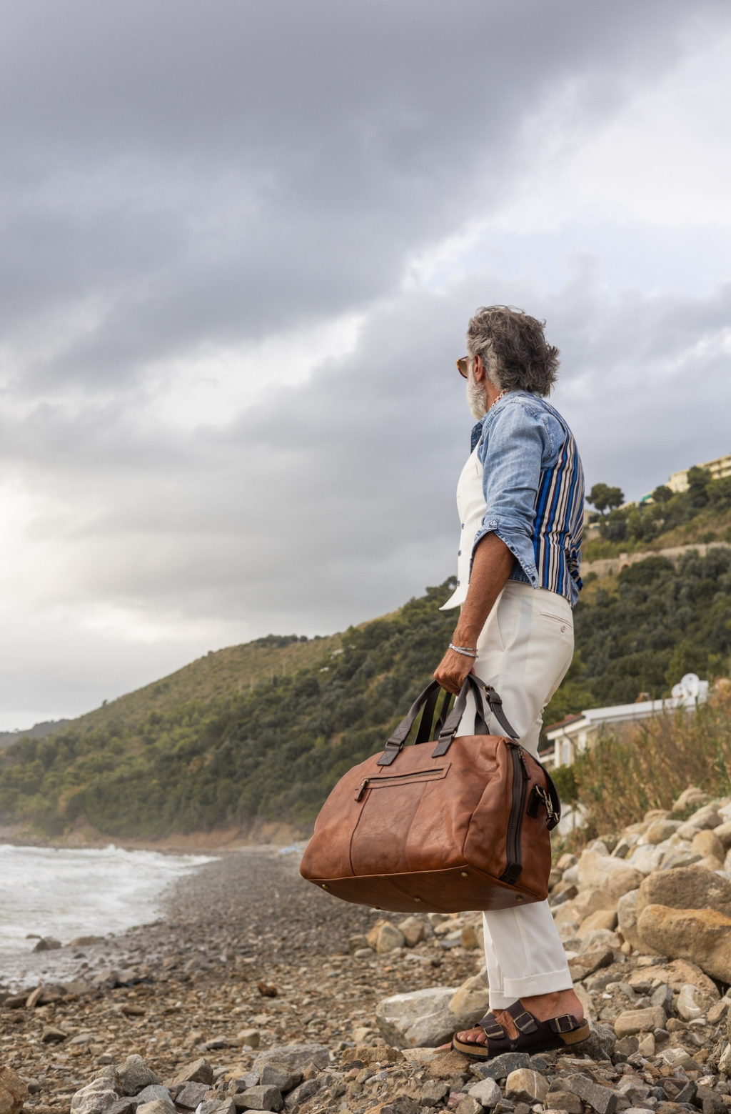 This bag is more than just a duffel. It’s a statement of elegance and simplicity, crafted from the finest full grain leather that feels soft and natural to the touch. It’s spacious enough to fit your laptop, clothes, and other essentials, but sleek enough to suit any occasion. Whether you’re jetting off for business or pleasure, this bag will make you feel confident and stylish. The bag features two smooth handles and a shoulder strap for your comfort, as well as a double zipper opening that lets you access your belongings with ease and flair. The zip pockets are both functional and fashionable, keeping your valuables safe and handy. With every use, this full grain leather duffel bag will develop a distinctive character.