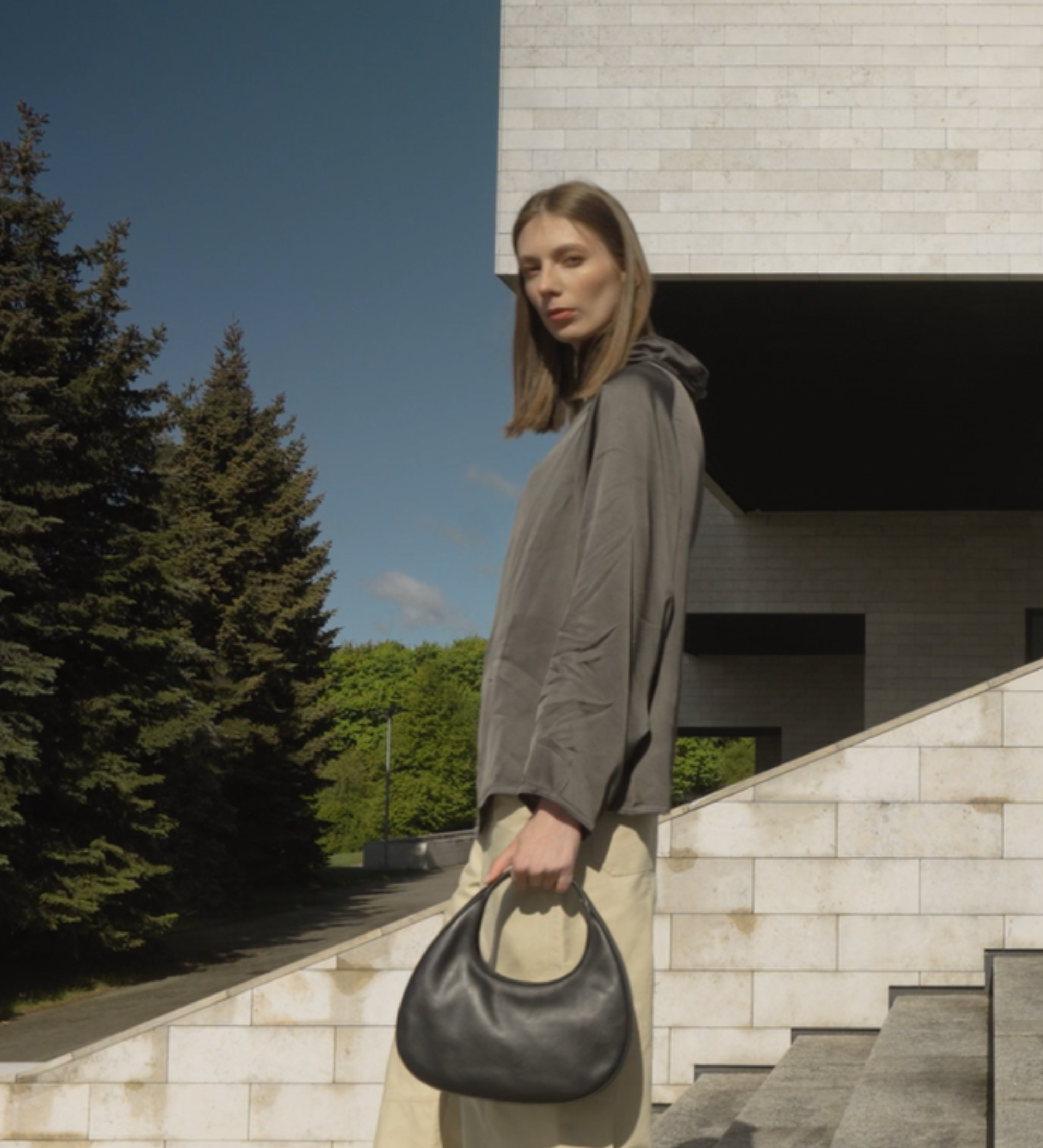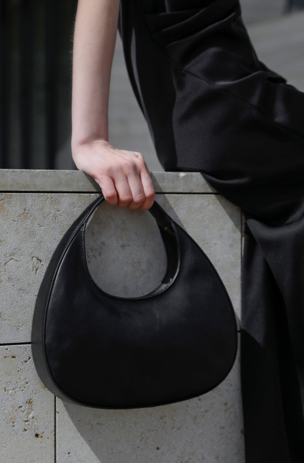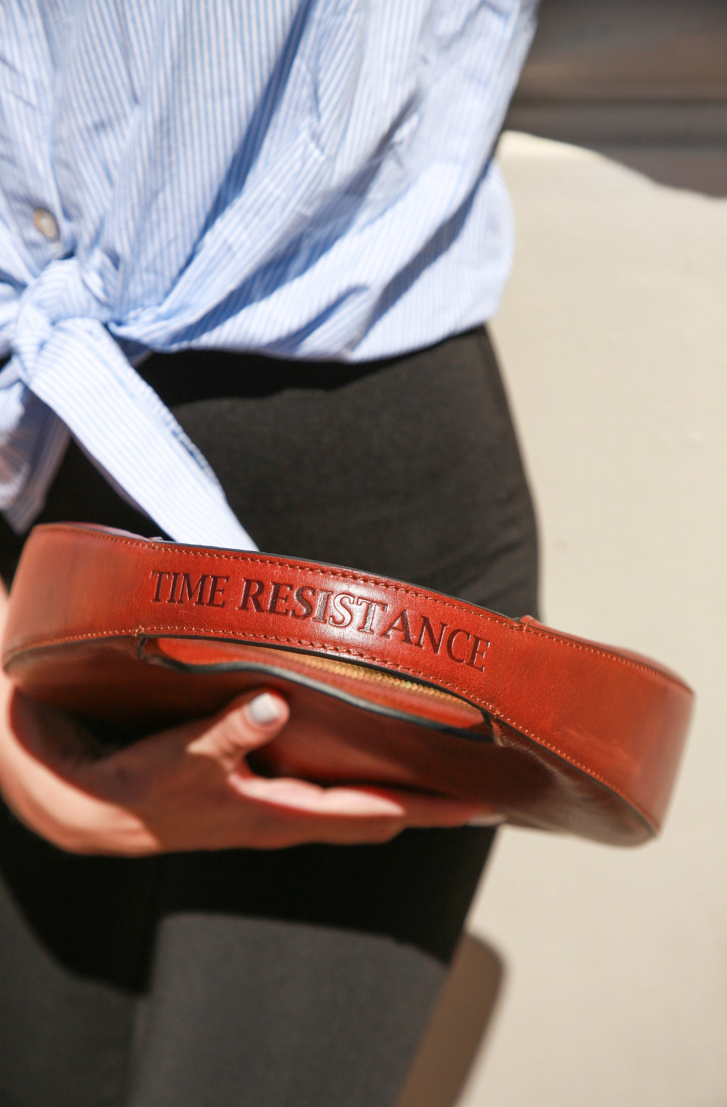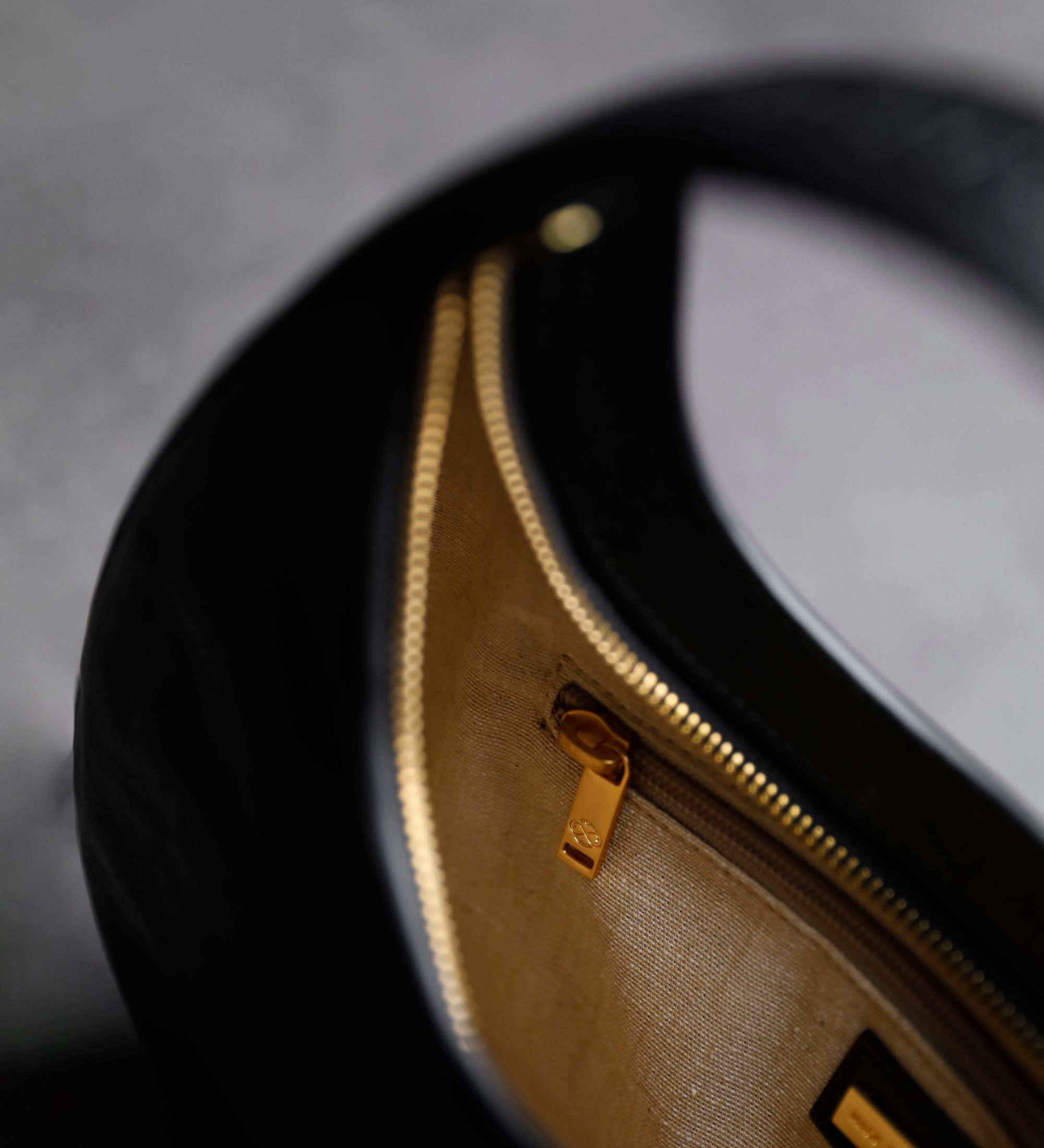 Introducing "The Moonstone" leather handbag, a celestial-inspired accessory that captures the essence of timeless elegance. Crafted with precision, its small, rounded shape evokes tranquil beauty, while the round handle adds a touch of grace. Designed to be cradled in your arm with its compact size, it exudes an aura of effortless sophistication. The zip closure ensures your belongings are securely tucked away, while the sleek minimal design speaks volumes of refined taste. Adorned with the Time Resistance logo on the handle, it's a symbol of quality craftsmanship and enduring style. Illuminate your ensemble with "The" Handbag—an embodiment of celestial allure and understated refinement.