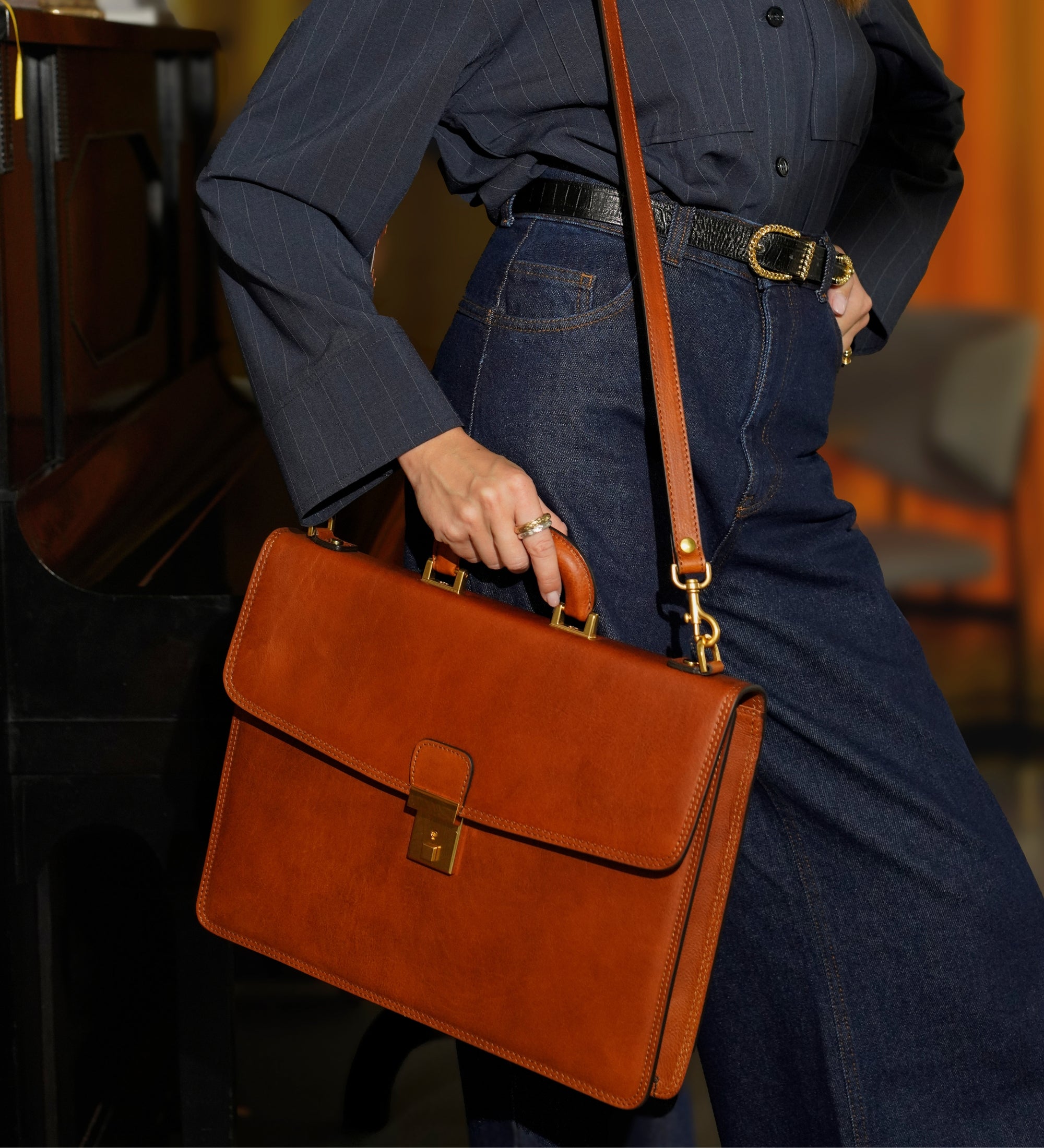 A leather briefcase that is classic but unassuming. For when you haven’t yet decided what kind of character you are going to play in life. It goes with everything, allowing you full freedom to be one person today and the complete opposite tomorrow: a suit or a beanie? Both? Does anyone do both? No? Should you be the first? Complemented by imagination.