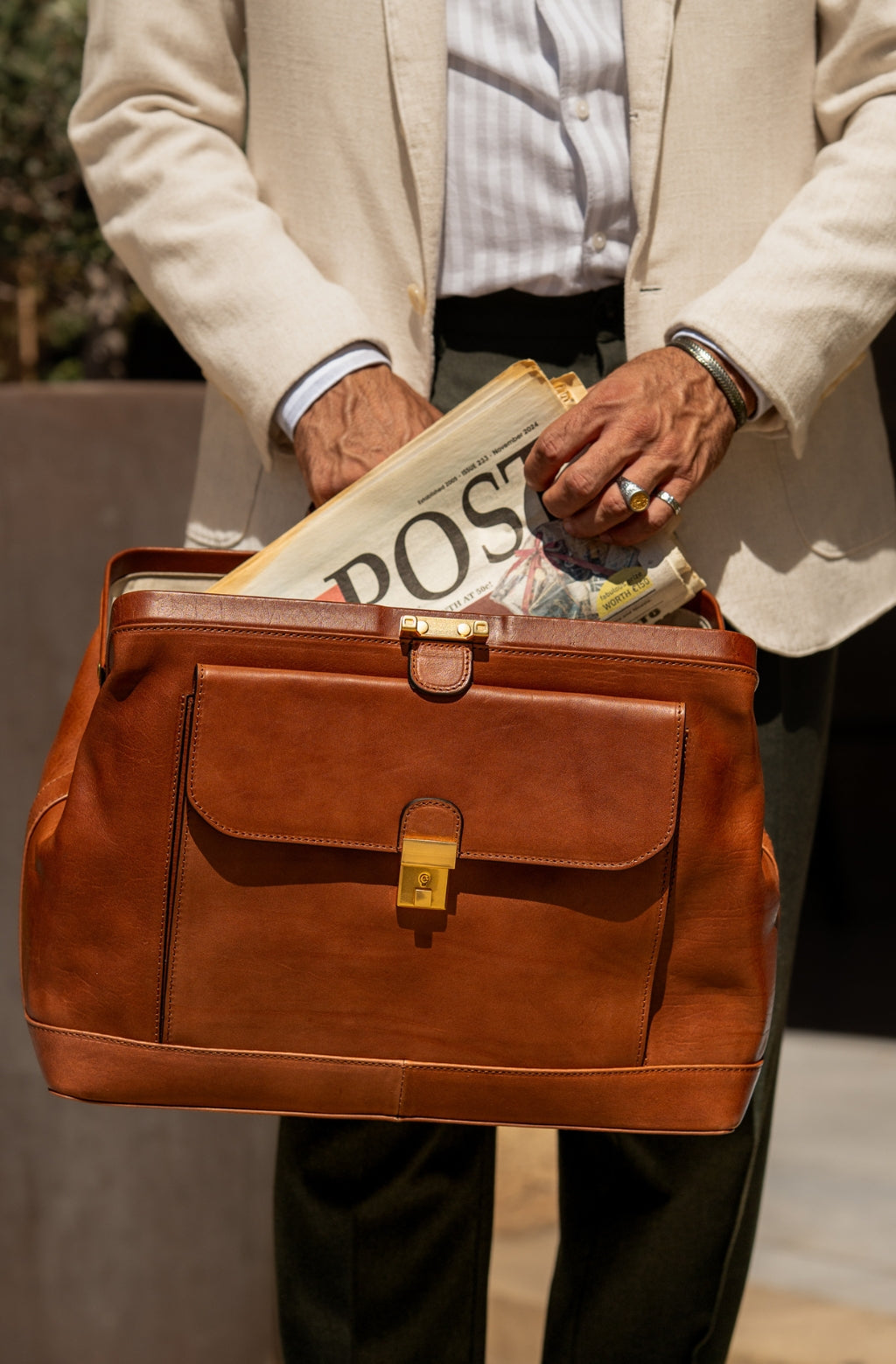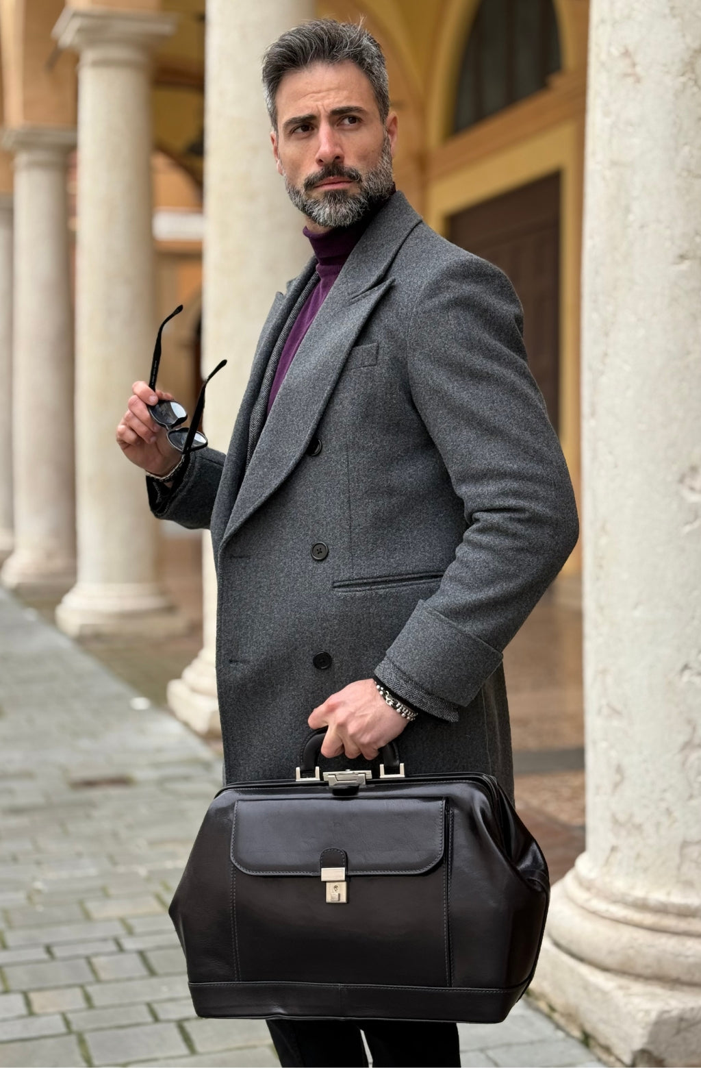 A leather doctor bag, as classic as the play. And, just like the play, it is all about character. Destined to be coupled with someone of confidence and stature, the Hamlet adds a note of originality while remaining completely classic and polished.