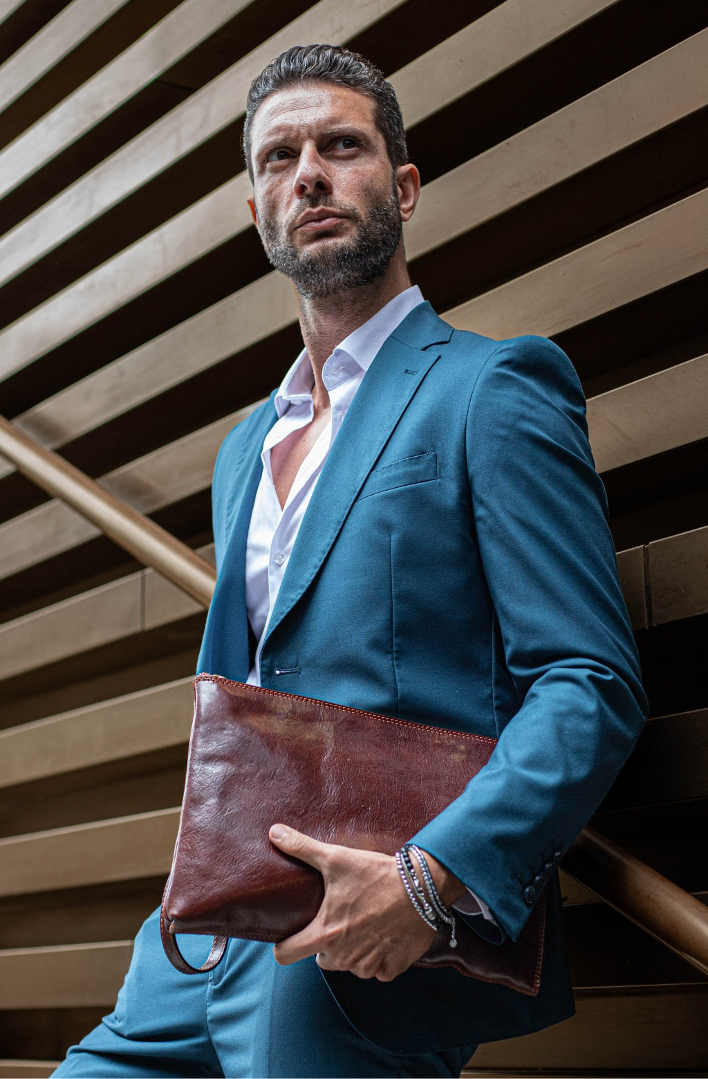 Hand dyeing is a slow, meticulous craft where every hide is colored by hand, layer by layer, using gentle circular motions. Instead of machines, it is the artisan’s touch that controls depth, warmth, and character. The dye is massaged into the grain, allowing the leather to breathe, absorb, and reveal its natural variations.
