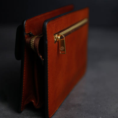 Time Resistance bags are crafted from premium full-grain, hand-dyed, vegetable-tanned Italian cowhide, known as Vachetta leather, which develops a beautiful patina.