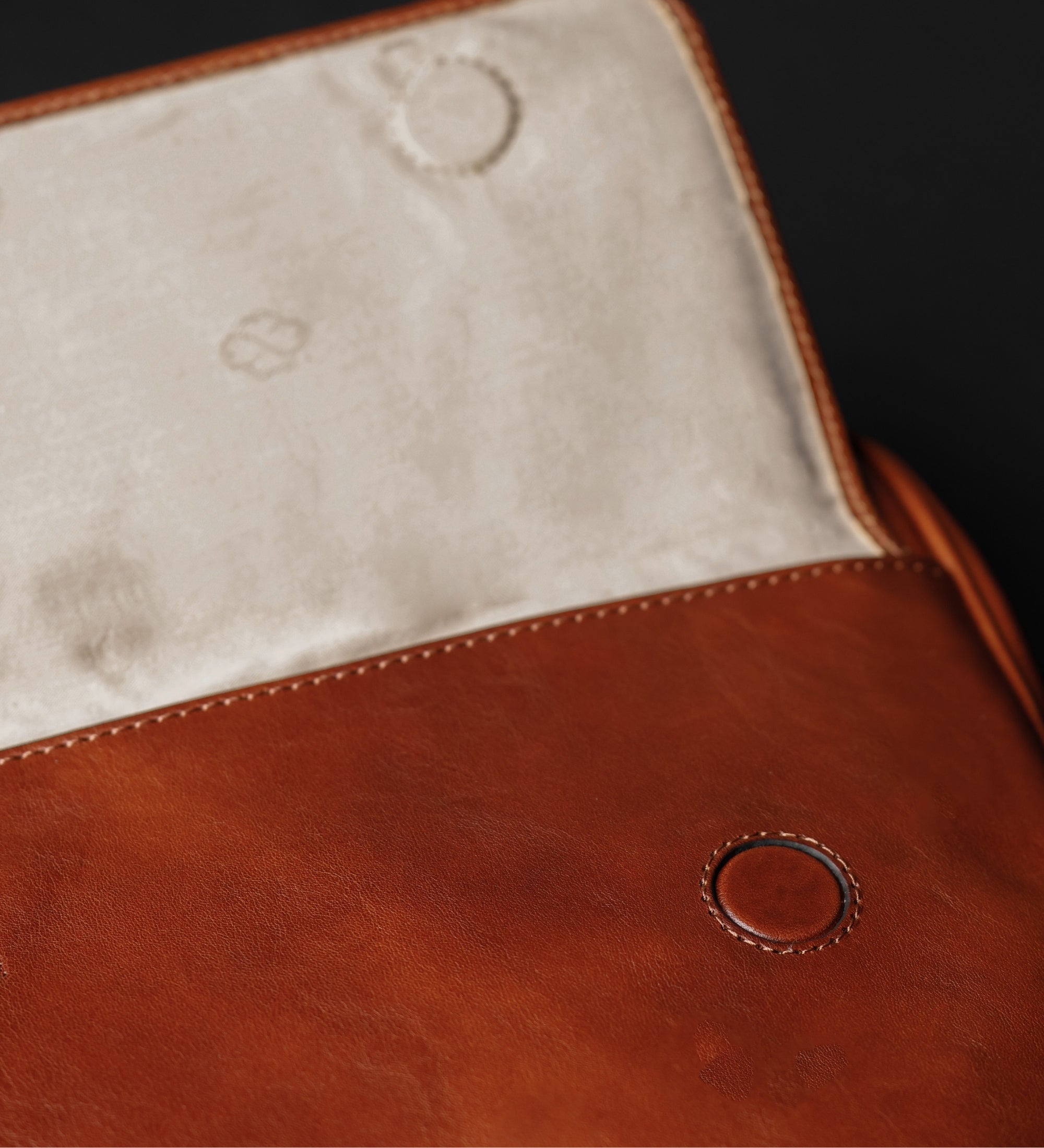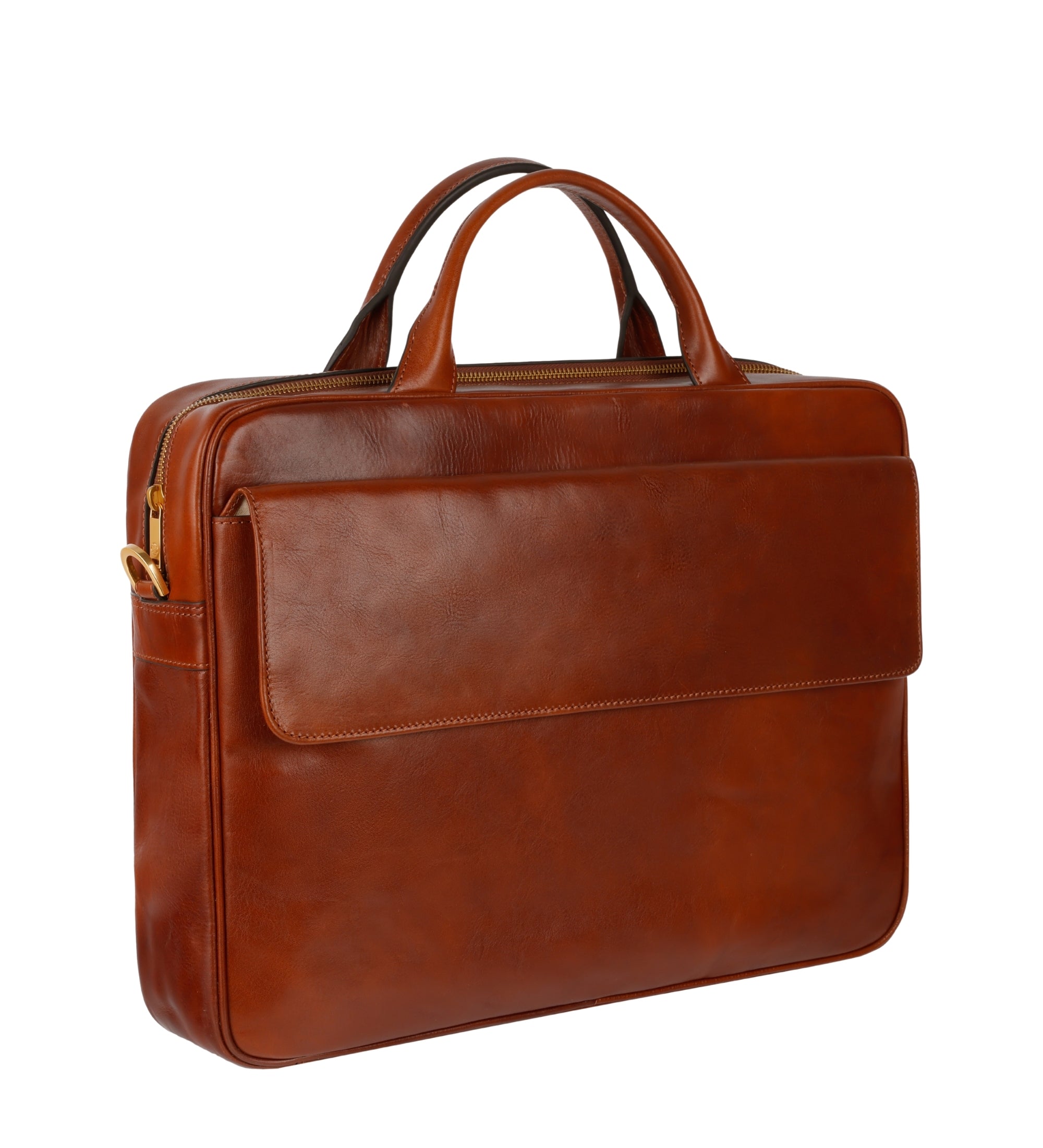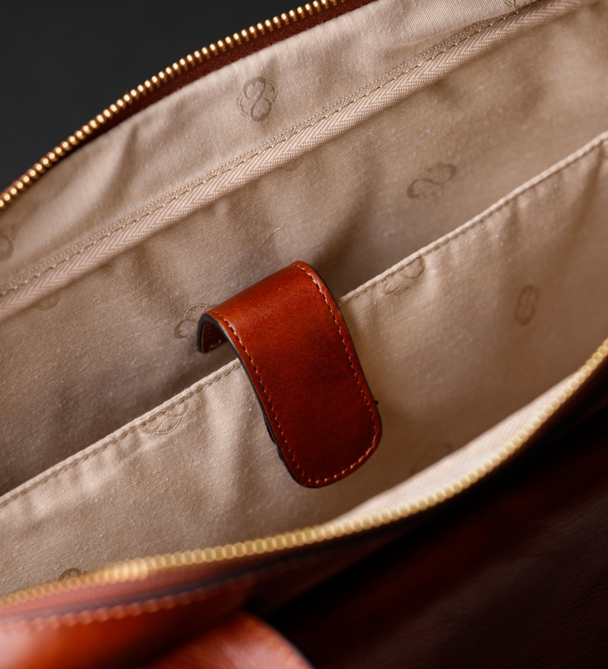 The Sheltering Sky - this leather briefcase is a great companion on the way to work or study. Its solid appearance is just perfect for both men and women's needs. Made from full-grain Italian leather, it comes with a trolley strap and a detachable shoulder strap, making it perfect for travel. The spacious compartments easily fit legal-sized paper, A4 documents, and folders, and it also has room for a 15-inch laptop. If that is not enough - we made an additional pocket with a flap on the front with an extra-strong magnetic closure ideal for keeping your essentials easily accessible.