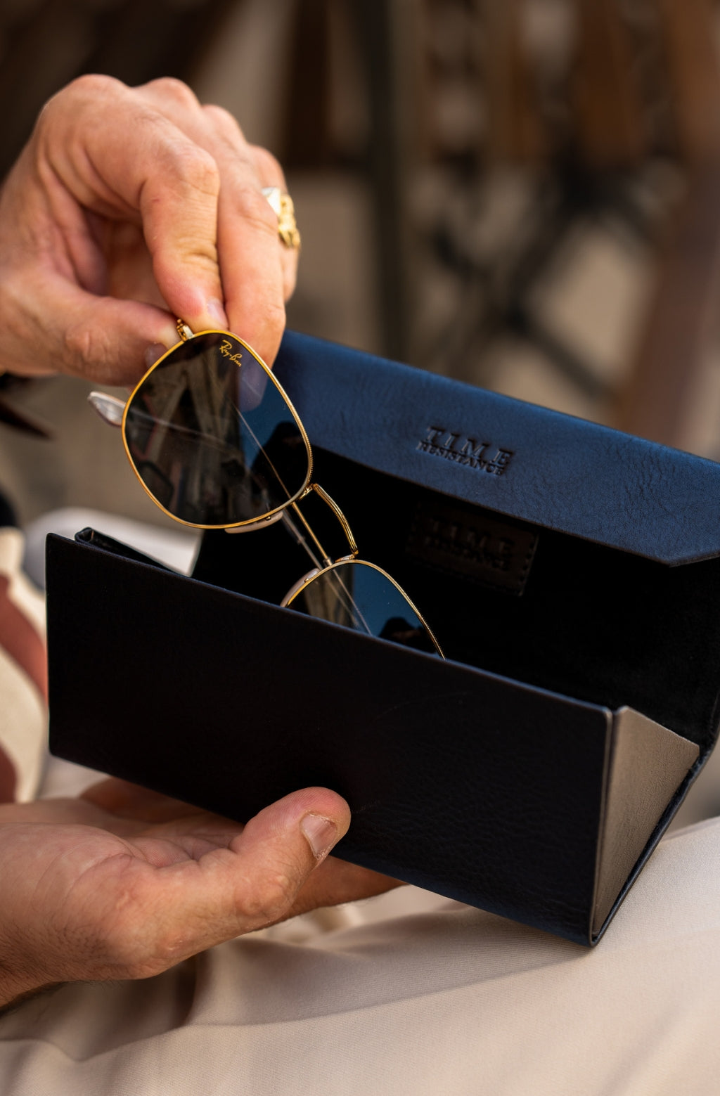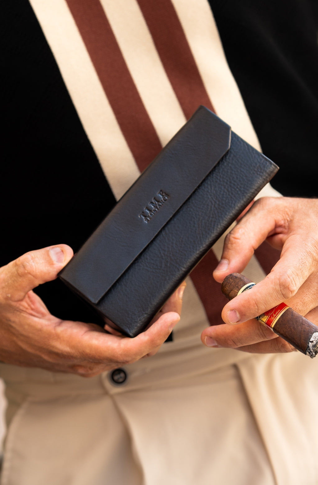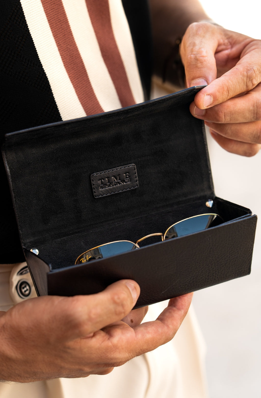 Time Resistance bags and accessories are crafted from premium full-grain, hand-dyed, vegetable-tanned Italian cowhide, known as Vachetta leather, which develops a beautiful patina and ages gracefully over time.