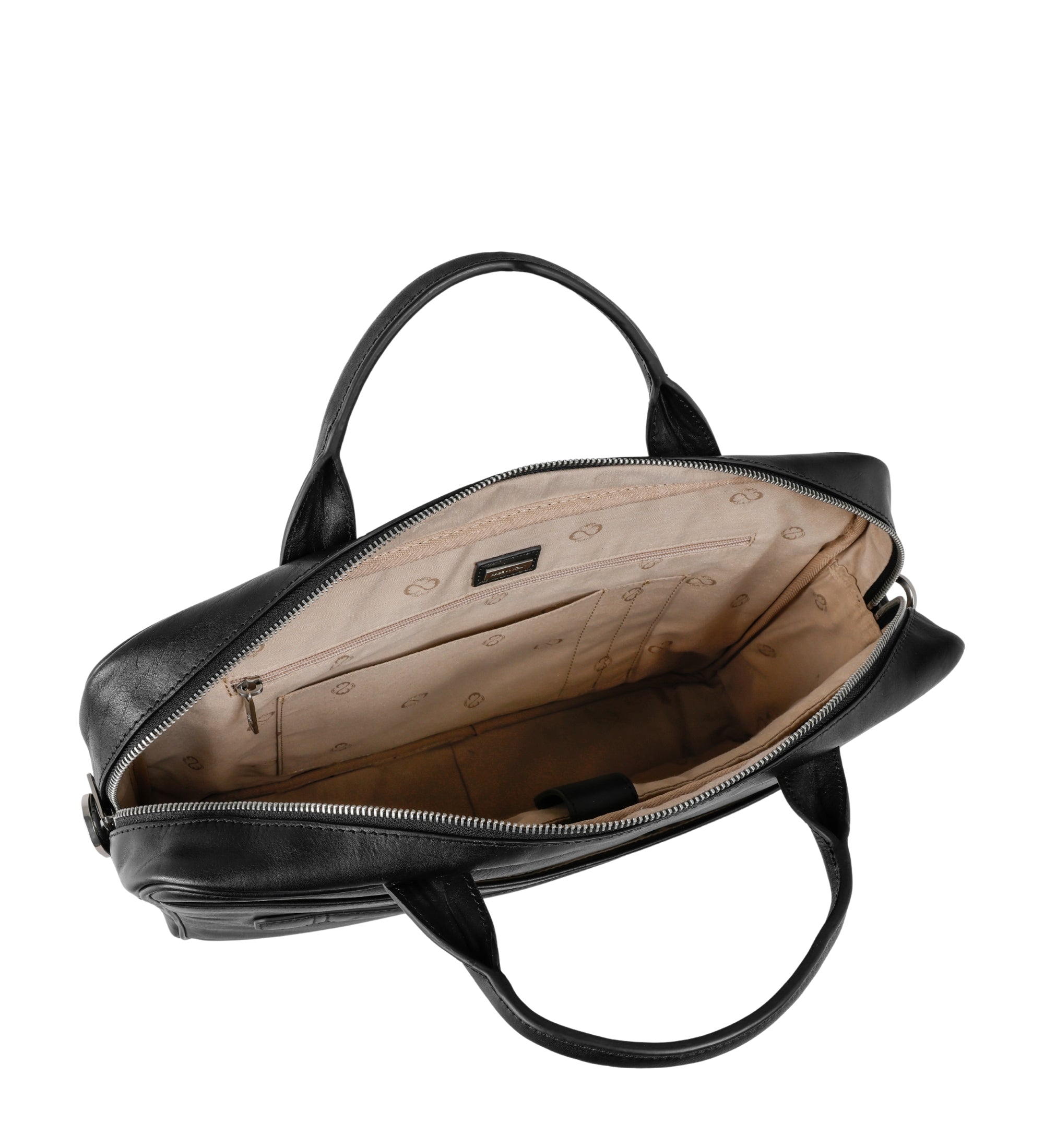 The Sheltering Sky - this leather briefcase is a great companion on the way to work or study. Its solid appearance is just perfect for both men and women's needs. Made from full-grain Italian leather, it comes with a trolley strap and a detachable shoulder strap, making it perfect for travel. The spacious compartments easily fit legal-sized paper, A4 documents, and folders, and it also has room for a 15-inch laptop. If that is not enough - we made an additional pocket with a flap on the front with an extra-strong magnetic closure ideal for keeping your essentials easily accessible.