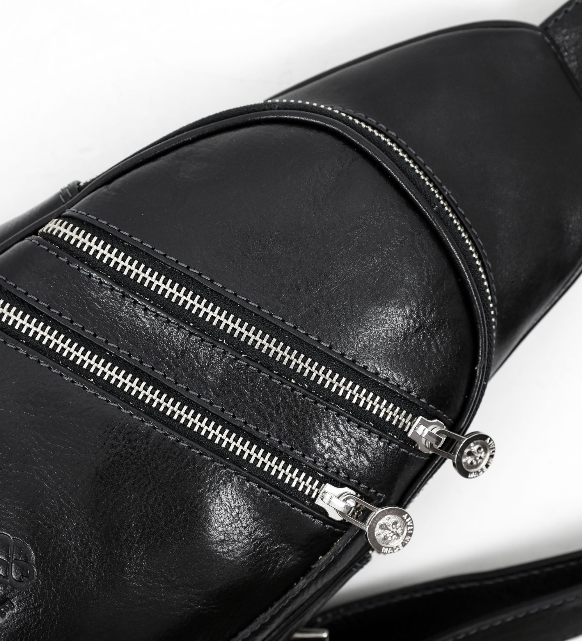 This Italian leather sling bag was designed to maximize the comfort of traveling. Our full-grain leather chest bag Catch-22 can be carried on the chest and on the back. Close to the body premium quality fanny pack does not restrain movements nor spirit of traveling.