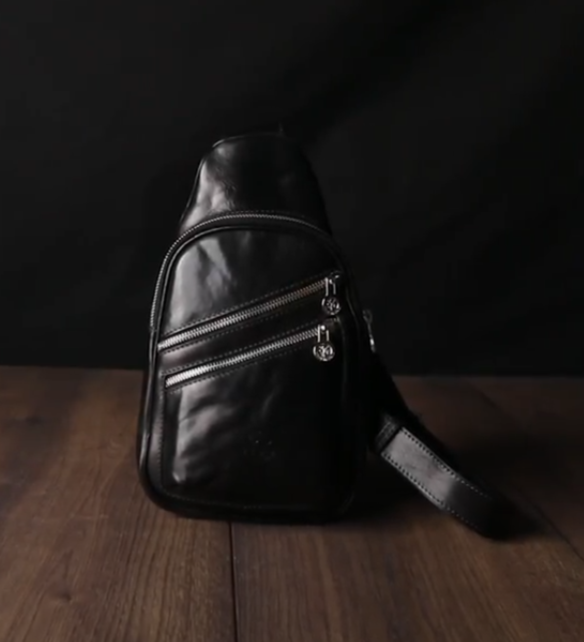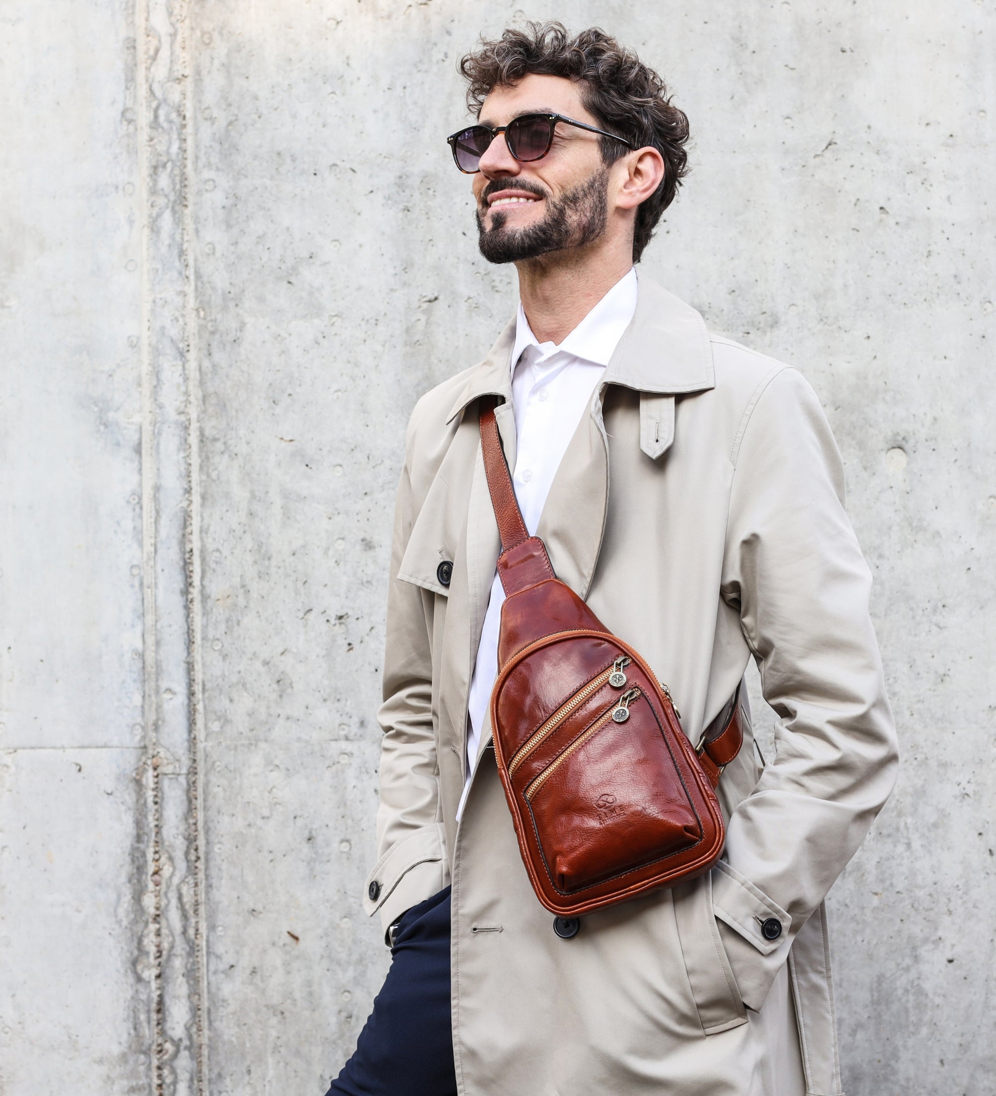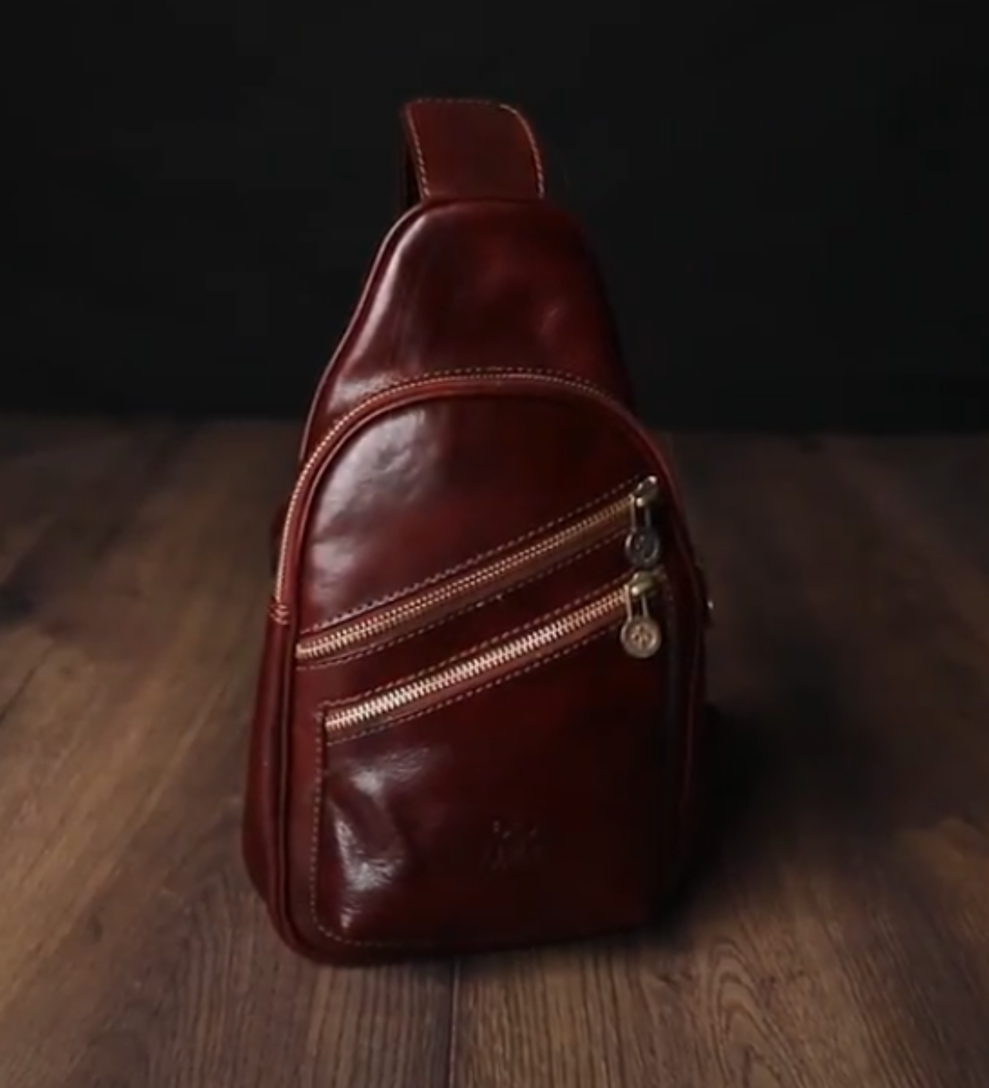 This Italian leather sling bag was designed to maximize the comfort of traveling. Our full-grain leather chest bag Catch-22 can be carried on the chest and on the back. Close to the body premium quality fanny pack does not restrain movements nor spirit of traveling.