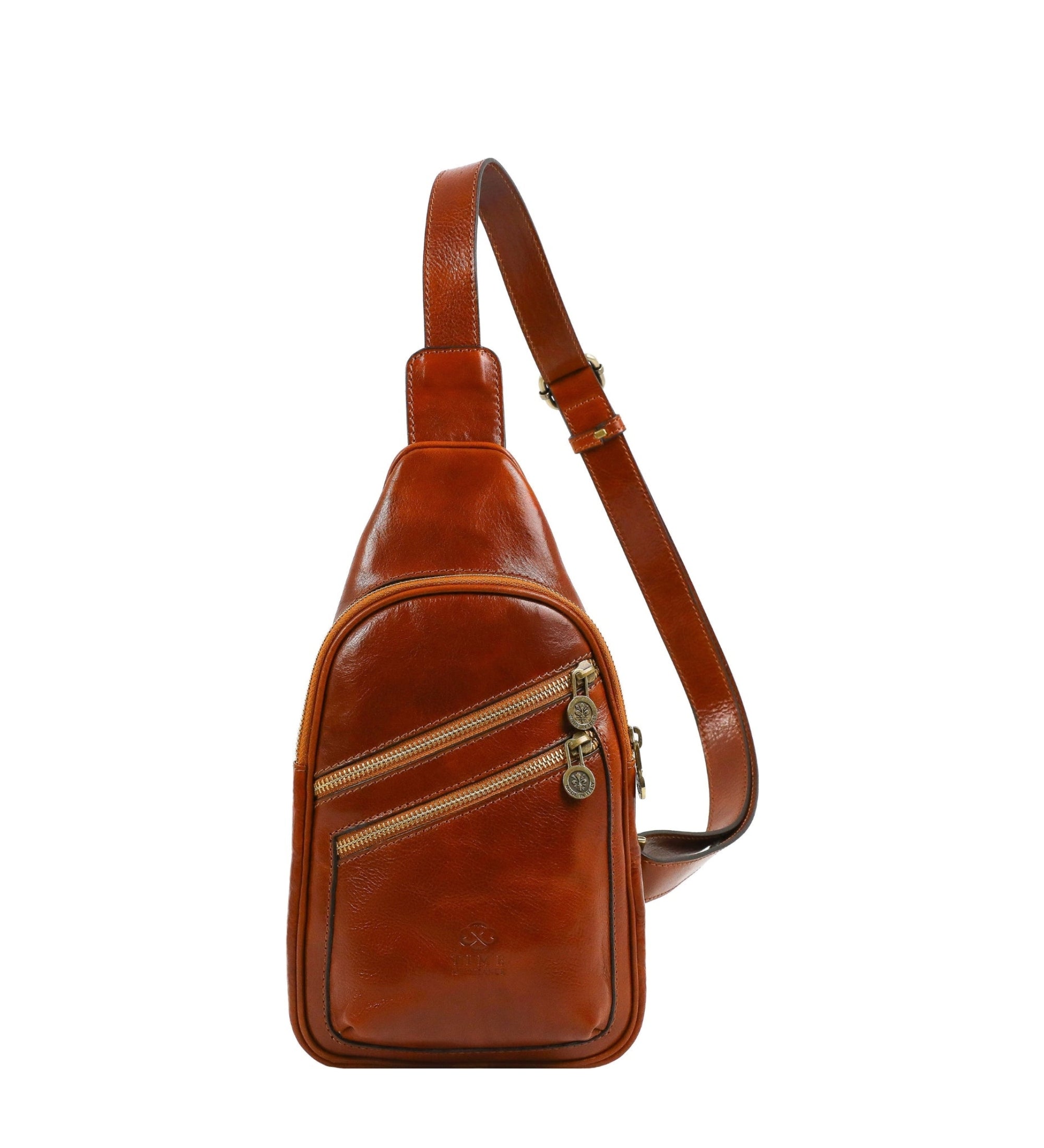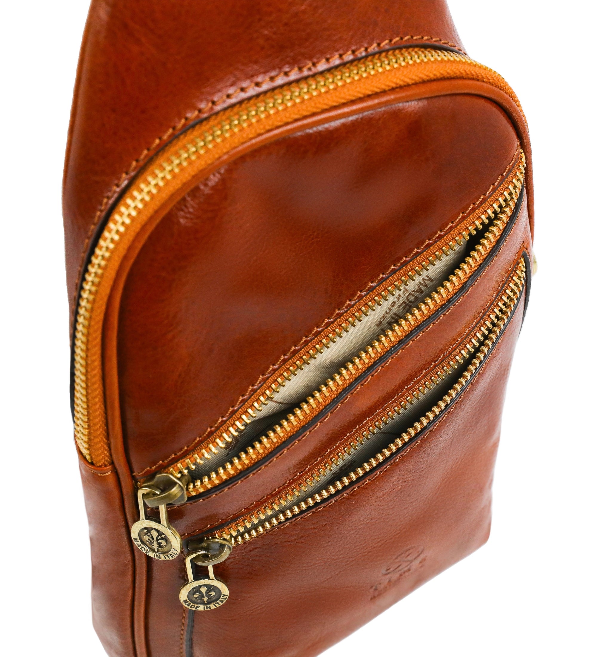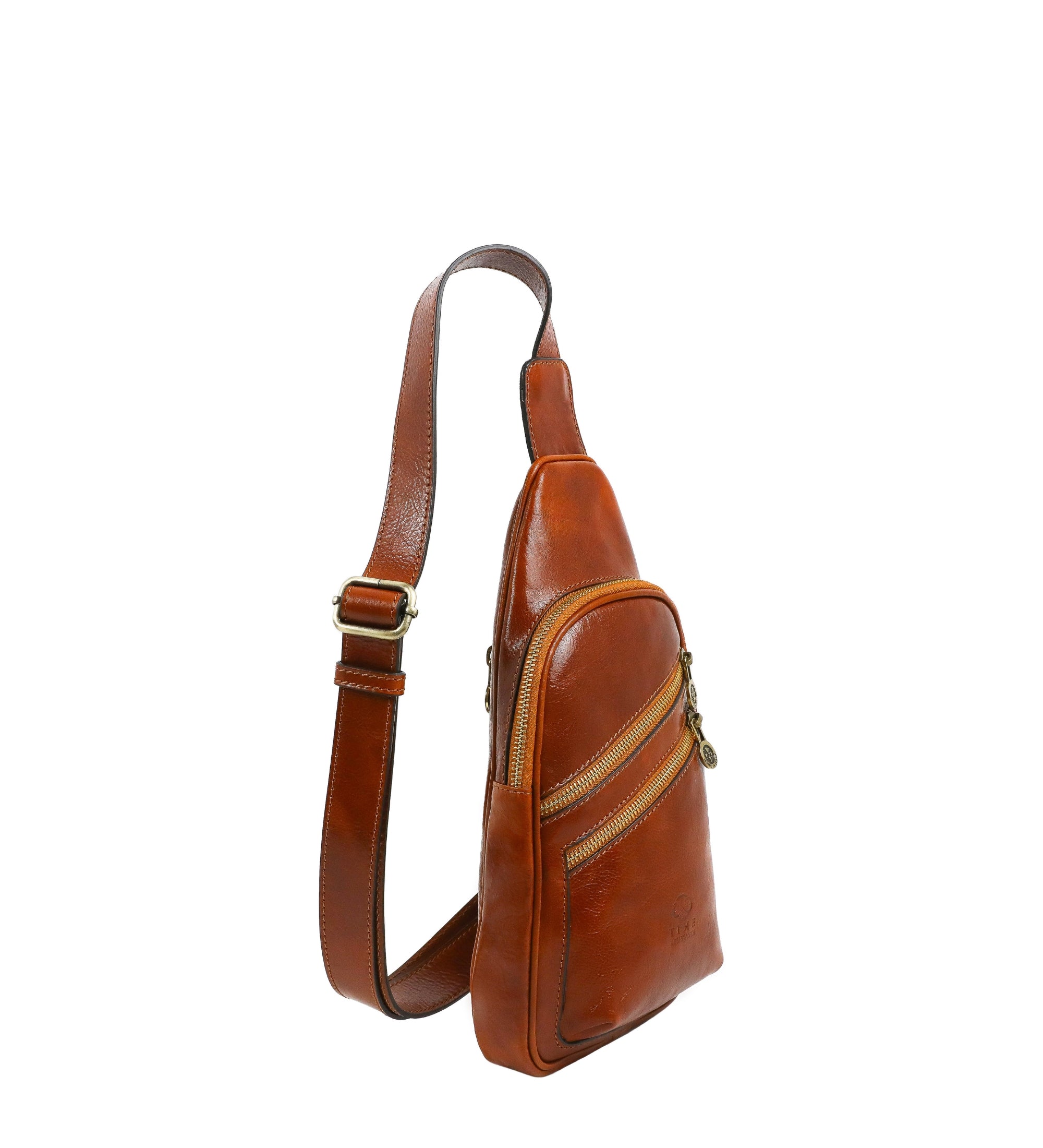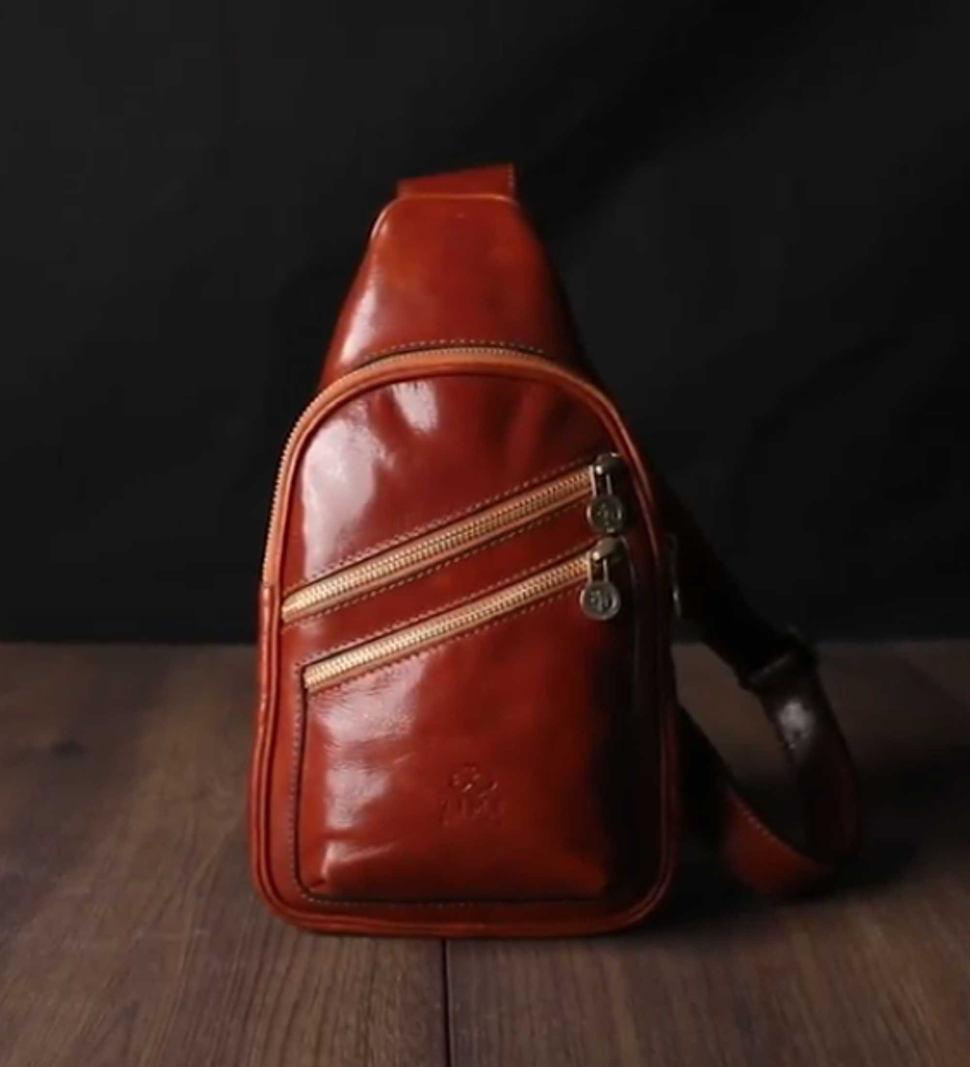 This Italian leather sling bag was designed to maximize the comfort of traveling. Our full-grain leather chest bag Catch-22 can be carried on the chest and on the back. Close to the body premium quality fanny pack does not restrain movements nor spirit of traveling.