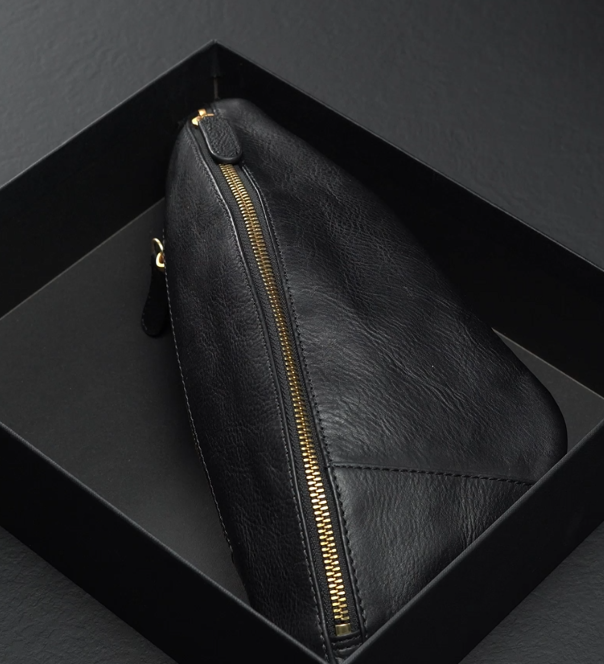 Introducing our leather sling bag Tales of the City quotes, a bold statement of individuality and contemporary flair. Its irregular triangle shape defies convention, with sharp, asymmetric corners that speak to the dynamic spirit of the modern explorer. As you sling it over your shoulder, you feel a surge of confidence and empowerment, knowing that you carry not just a bag, but a symbol of your unique perspective on life. Its minimalistic design exudes an air of effortless cool, while the adjustable strap offers versatility and adaptability to suit your every mood and movement. With zip pockets discreetly nestled within, this bag is not just a fashion statement, but a practical companion for urban adventures and spontaneous escapades. Wear it on your left or right side, embracing the freedom to express yourself however you choose. Embrace the unconventional with our leather chest bag, where style meets spontaneity in perfect harmony.