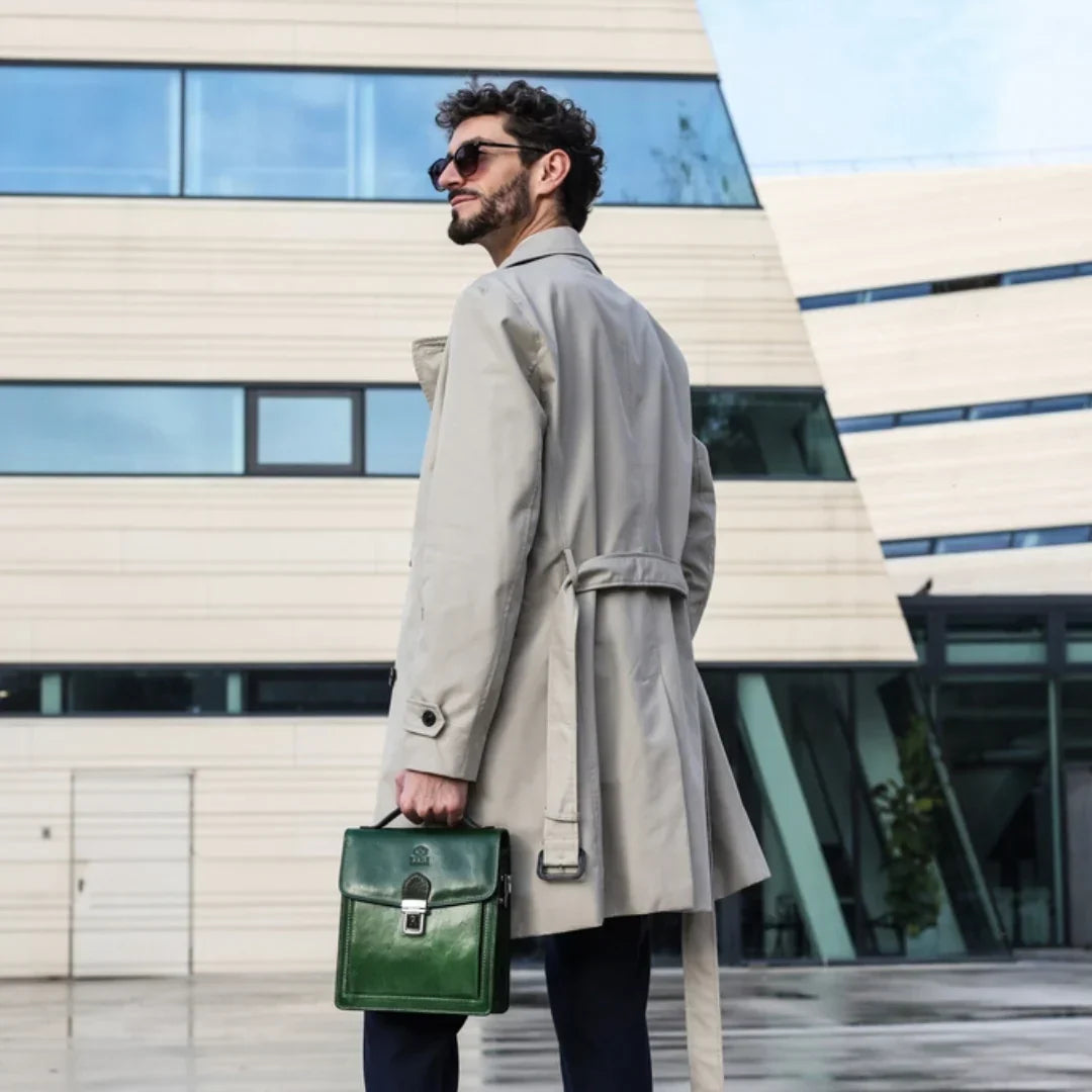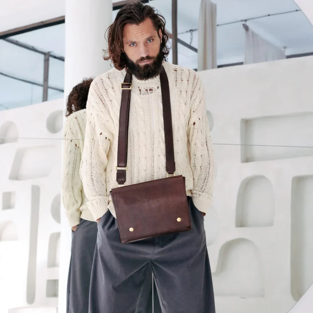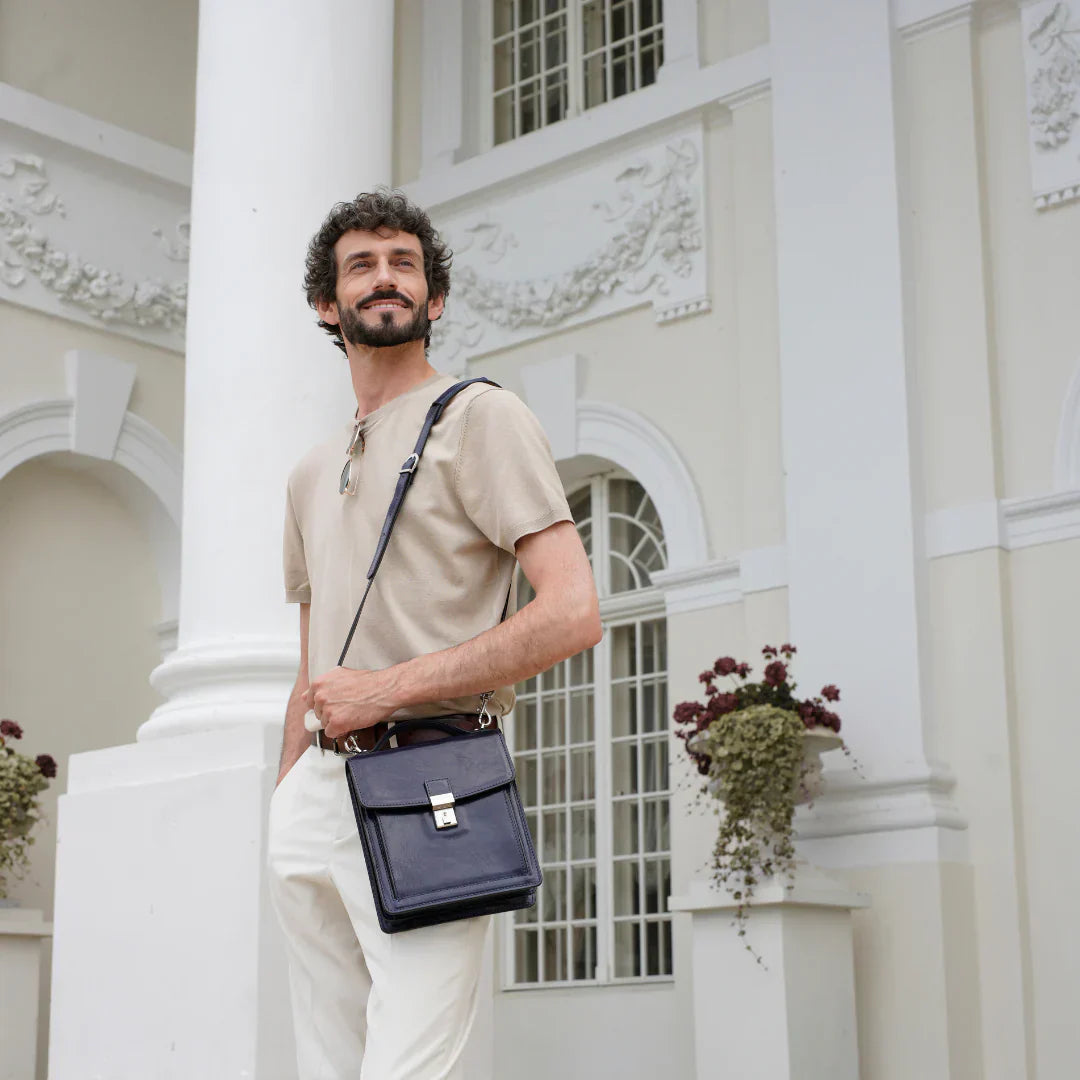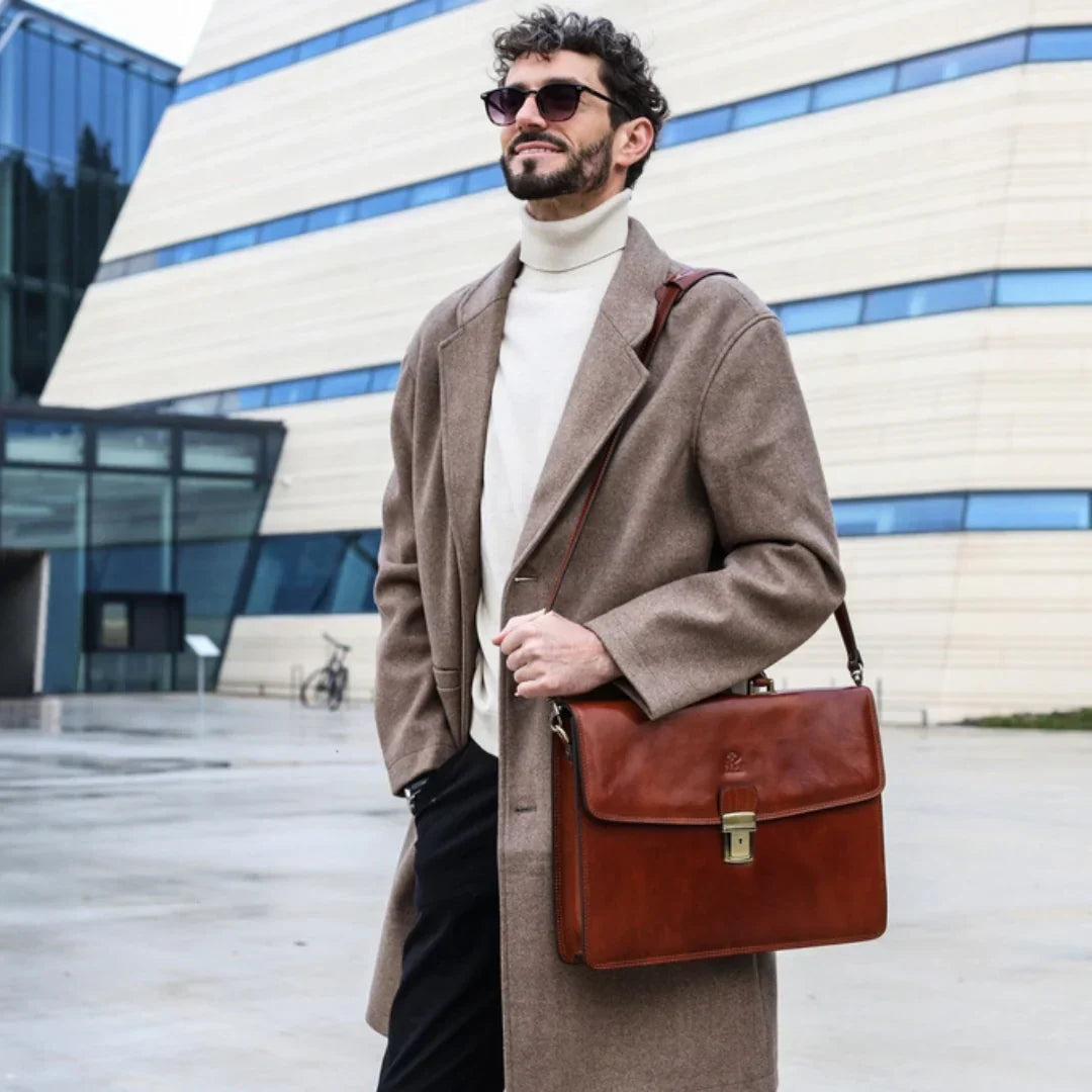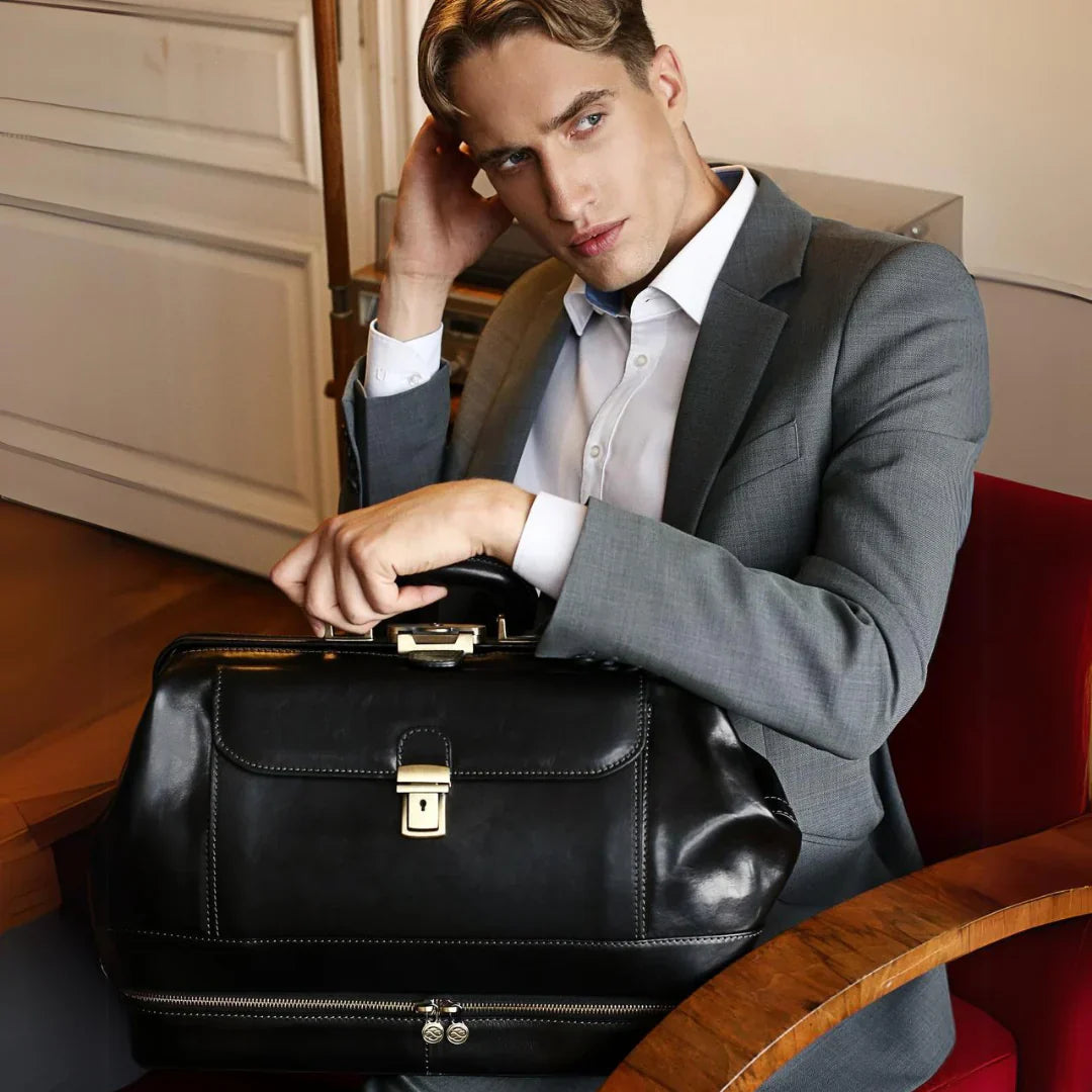 This spring, we invite you to experience a new kind of love: a love between you and your bag. Our latest photoshoot is a tribute to this special bond that transcends time and space. Our leather bags are more than just accessories. They are companions, confidants, and soulmates. They reflect your inner beauty and express your outer style. They are with you through thick and thin, through joy and sorrow, through work and play. They are the ones who make you feel alive and complete. Our photoshoot captures the magic of spring: the freshness of the air, the warmth of the sun, the vibrancy of the city. The model is a vision of elegance and charm, wearing a suit that matches his bags and his mood. The background is a stunning contrast of light and dark, with subtle touches of modernity and history. The photoshoot is a romance between you and your bag. It shows that you don’t need anyone else to make you happy. You just need yourself and your bag. So go ahead and indulge in a spring fling with our leather bags.