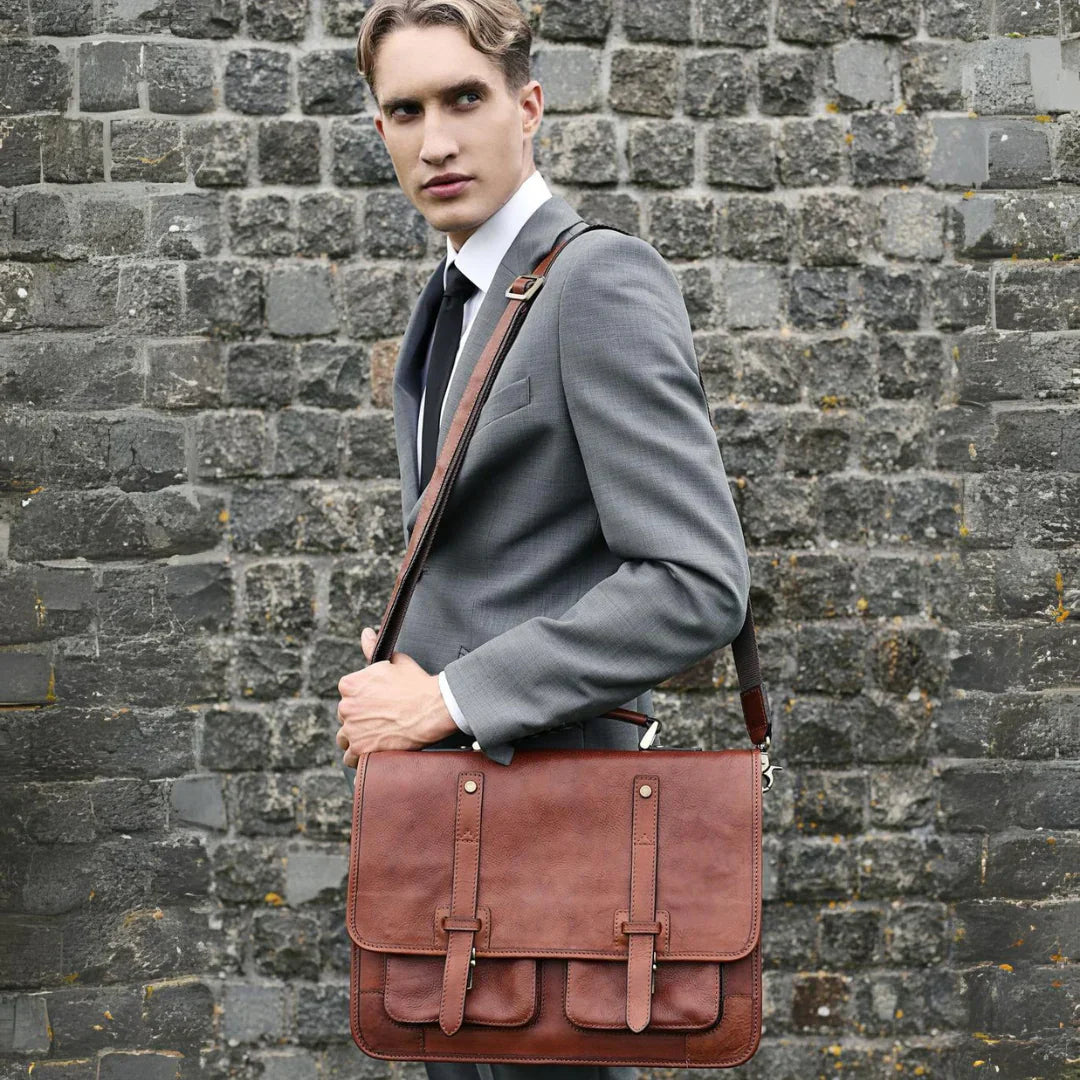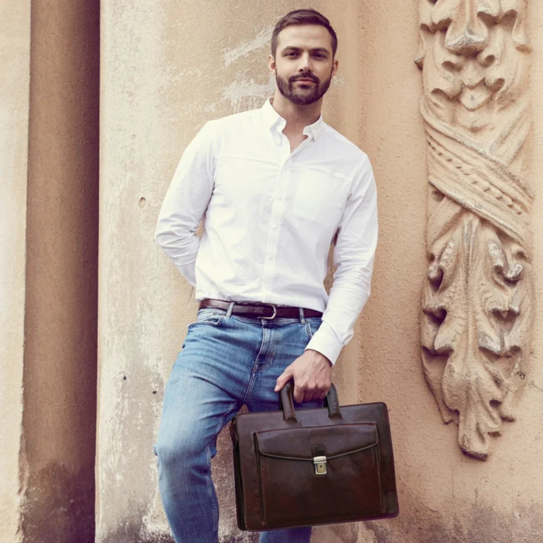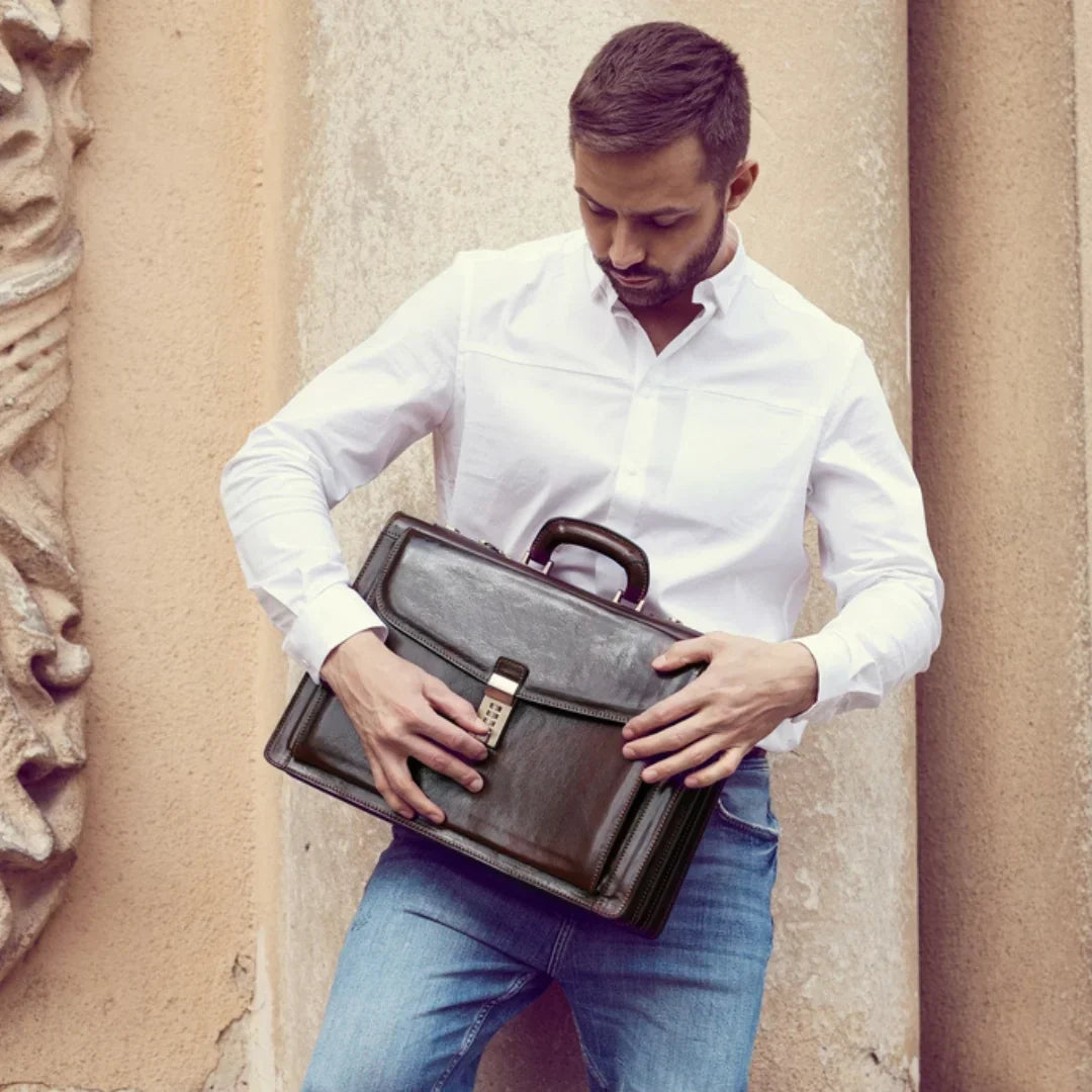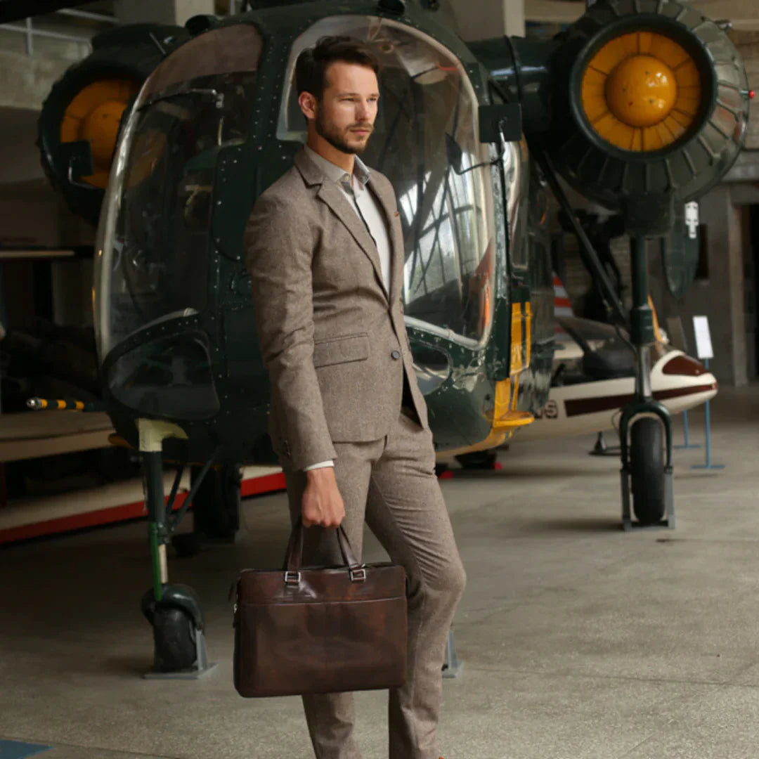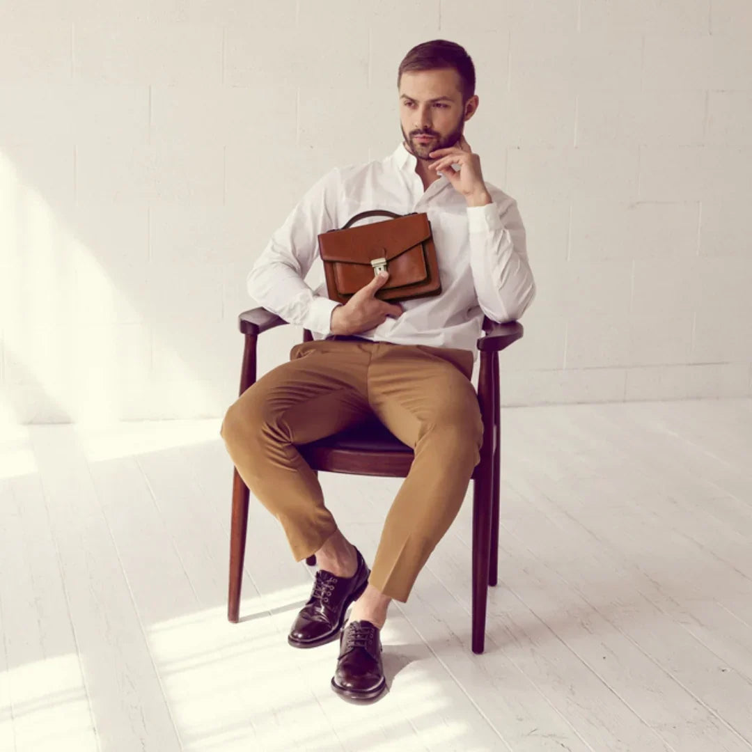 This spring, we invite you to experience a new kind of love: a love between you and your bag. Our latest photoshoot is a tribute to this special bond that transcends time and space. Our leather bags are more than just accessories. They are companions, confidants, and soulmates. They reflect your inner beauty and express your outer style. They are with you through thick and thin, through joy and sorrow, through work and play. They are the ones who make you feel alive and complete. Our photoshoot captures the magic of spring: the freshness of the air, the warmth of the sun, the vibrancy of the city. The model is a vision of elegance and charm, wearing a suit that matches his bags and his mood. The background is a stunning contrast of light and dark, with subtle touches of modernity and history. The photoshoot is a romance between you and your bag. It shows that you don’t need anyone else to make you happy. You just need yourself and your bag. So go ahead and indulge in a spring fling with our leather bags.