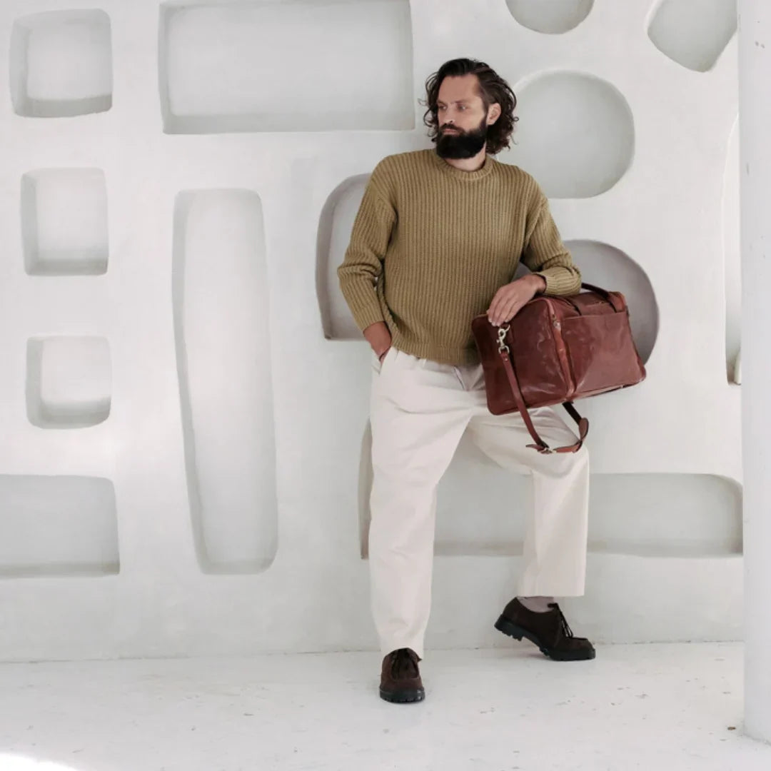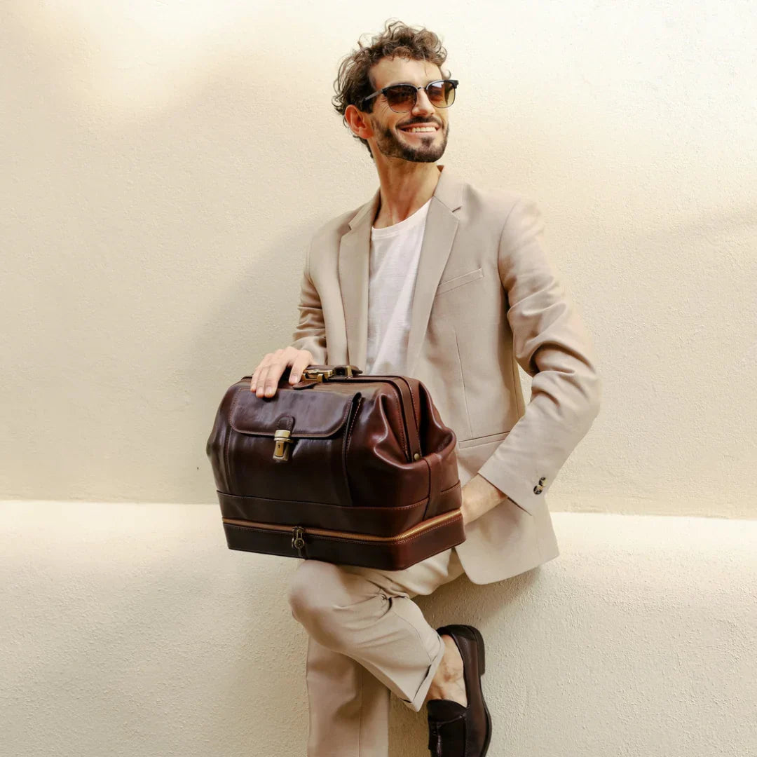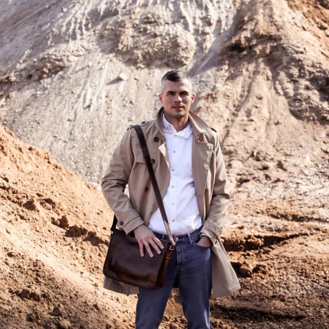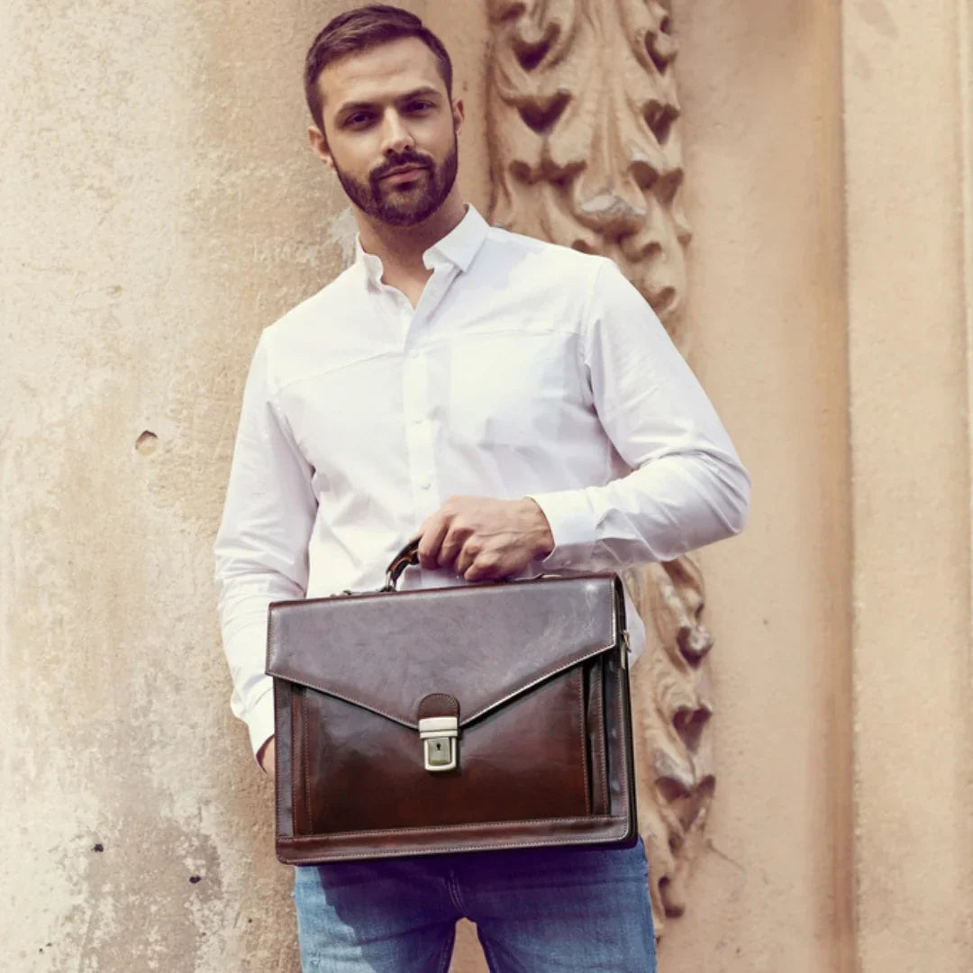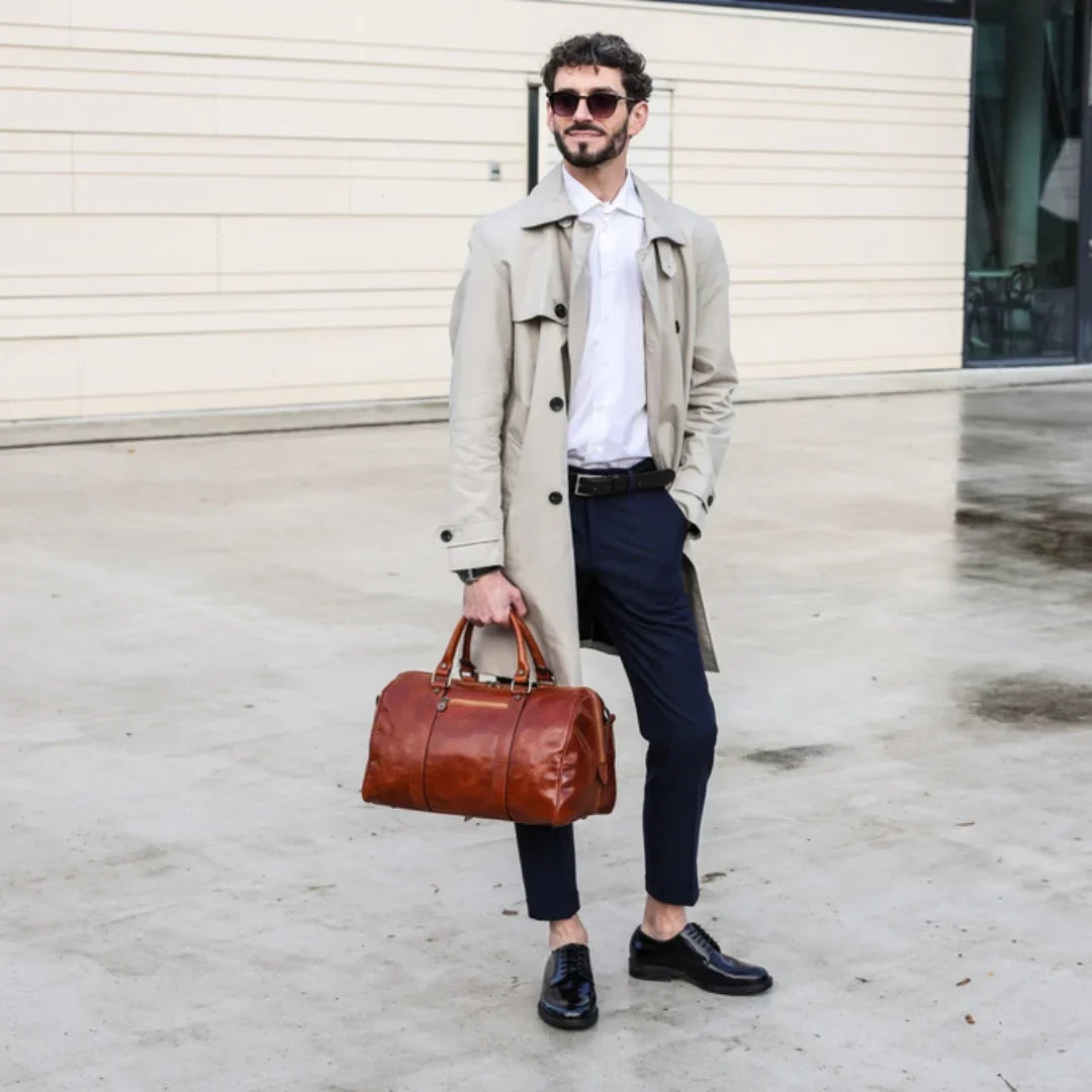 This spring, we invite you to experience a new kind of love: a love between you and your bag. Our latest photoshoot is a tribute to this special bond that transcends time and space. Our leather bags are more than just accessories. They are companions, confidants, and soulmates. They reflect your inner beauty and express your outer style. They are with you through thick and thin, through joy and sorrow, through work and play. They are the ones who make you feel alive and complete. Our photoshoot captures the magic of spring: the freshness of the air, the warmth of the sun, the vibrancy of the city. The model is a vision of elegance and charm, wearing a suit that matches his bags and his mood. The background is a stunning contrast of light and dark, with subtle touches of modernity and history. The photoshoot is a romance between you and your bag. It shows that you don’t need anyone else to make you happy. You just need yourself and your bag. So go ahead and indulge in a spring fling with our leather bags.