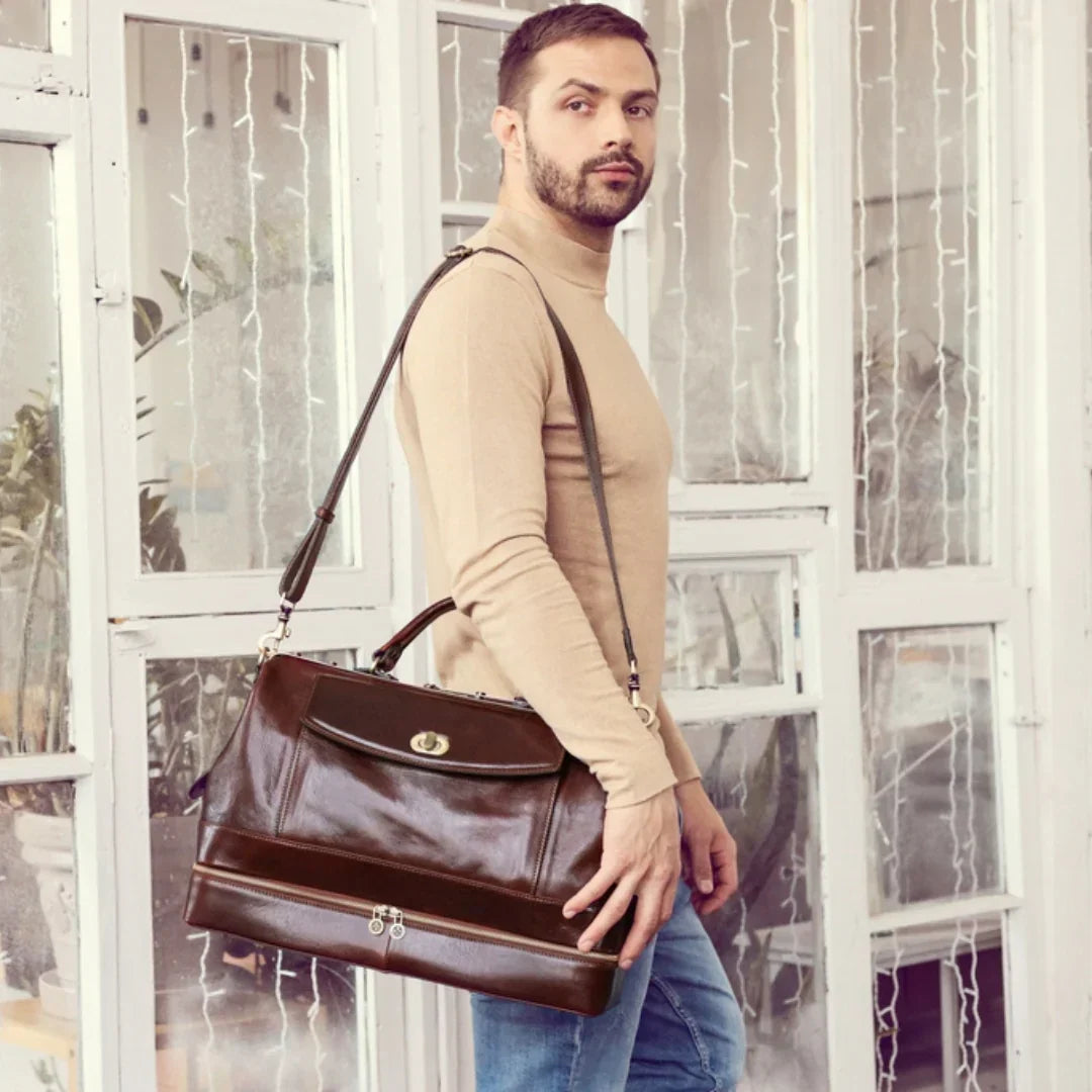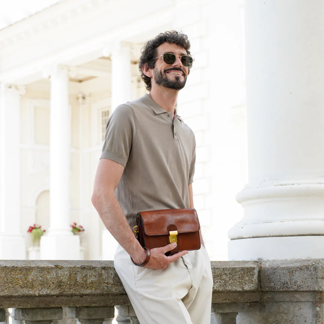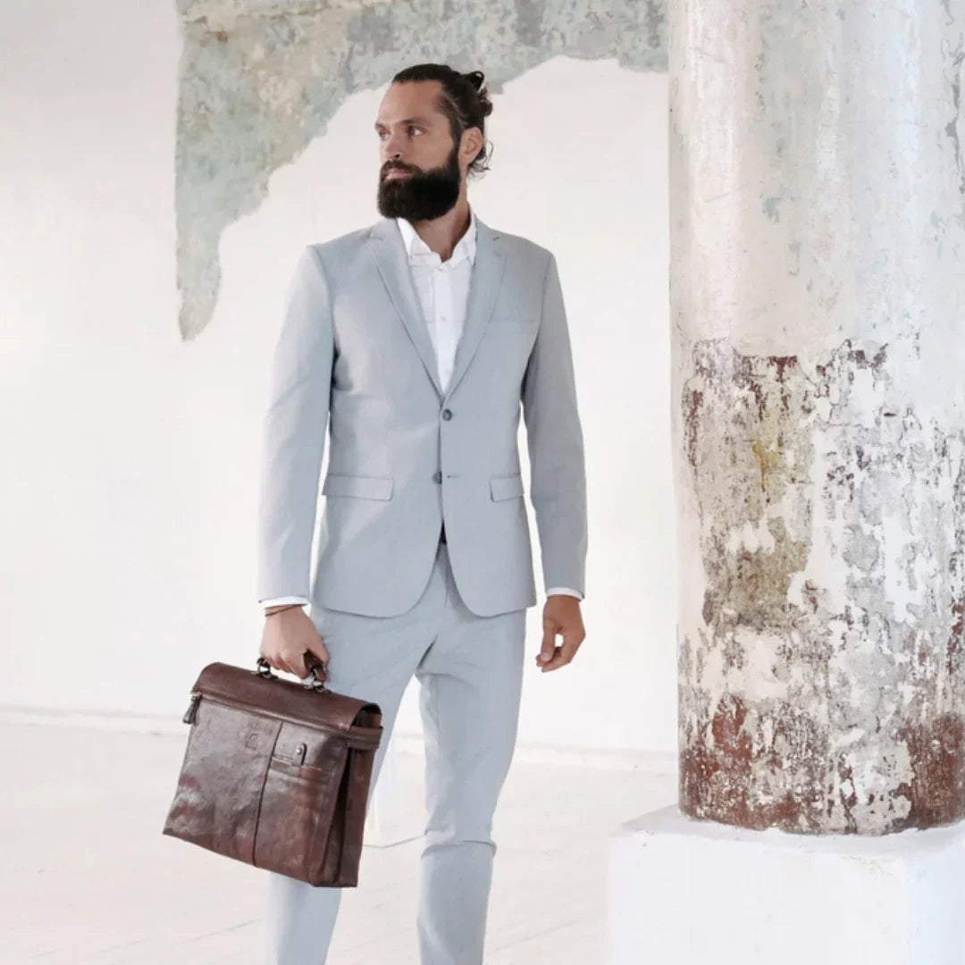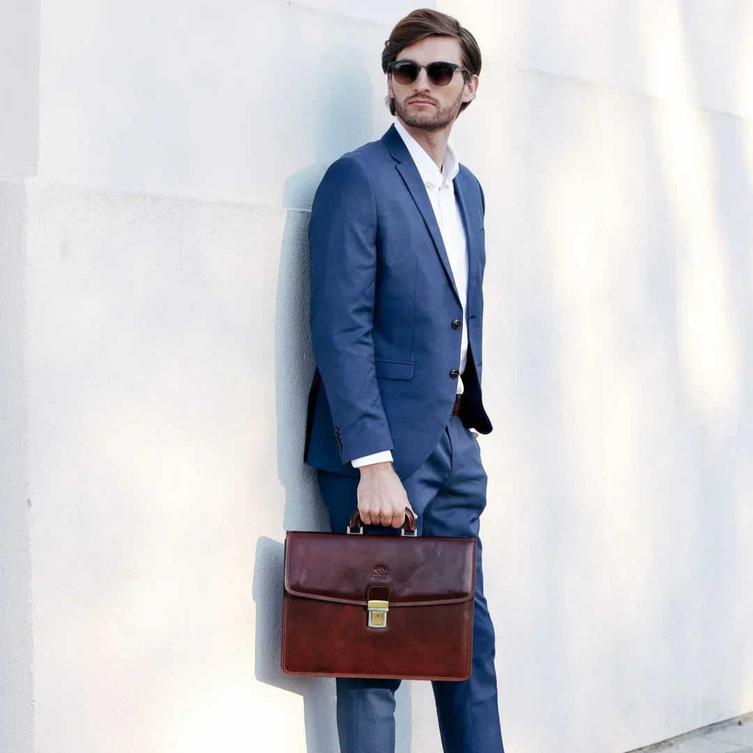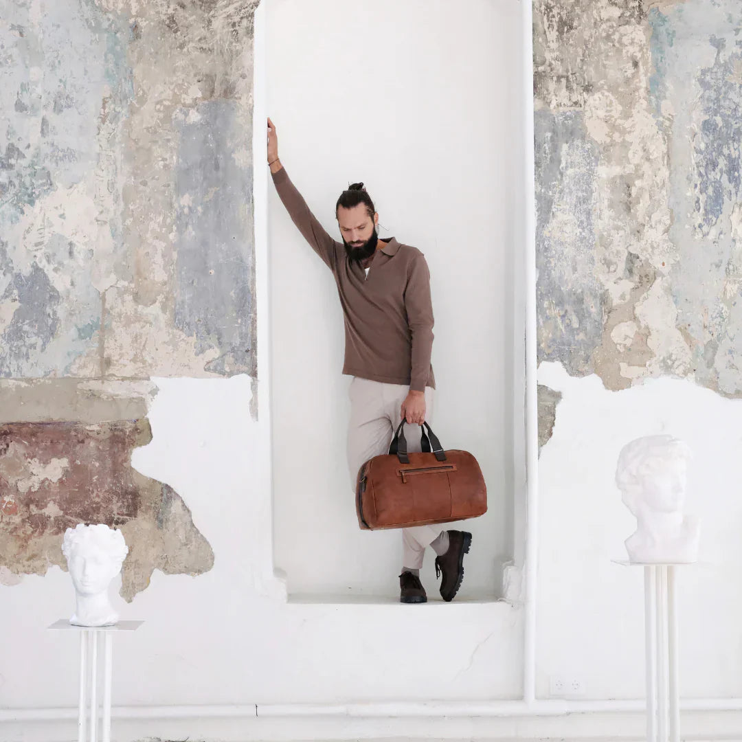 This spring, we invite you to experience a new kind of love: a love between you and your bag. Our latest photoshoot is a tribute to this special bond that transcends time and space. Our leather bags are more than just accessories. They are companions, confidants, and soulmates. They reflect your inner beauty and express your outer style. They are with you through thick and thin, through joy and sorrow, through work and play. They are the ones who make you feel alive and complete. Our photoshoot captures the magic of spring: the freshness of the air, the warmth of the sun, the vibrancy of the city. The model is a vision of elegance and charm, wearing a suit that matches his bags and his mood. The background is a stunning contrast of light and dark, with subtle touches of modernity and history. The photoshoot is a romance between you and your bag. It shows that you don’t need anyone else to make you happy. You just need yourself and your bag. So go ahead and indulge in a spring fling with our leather bags.