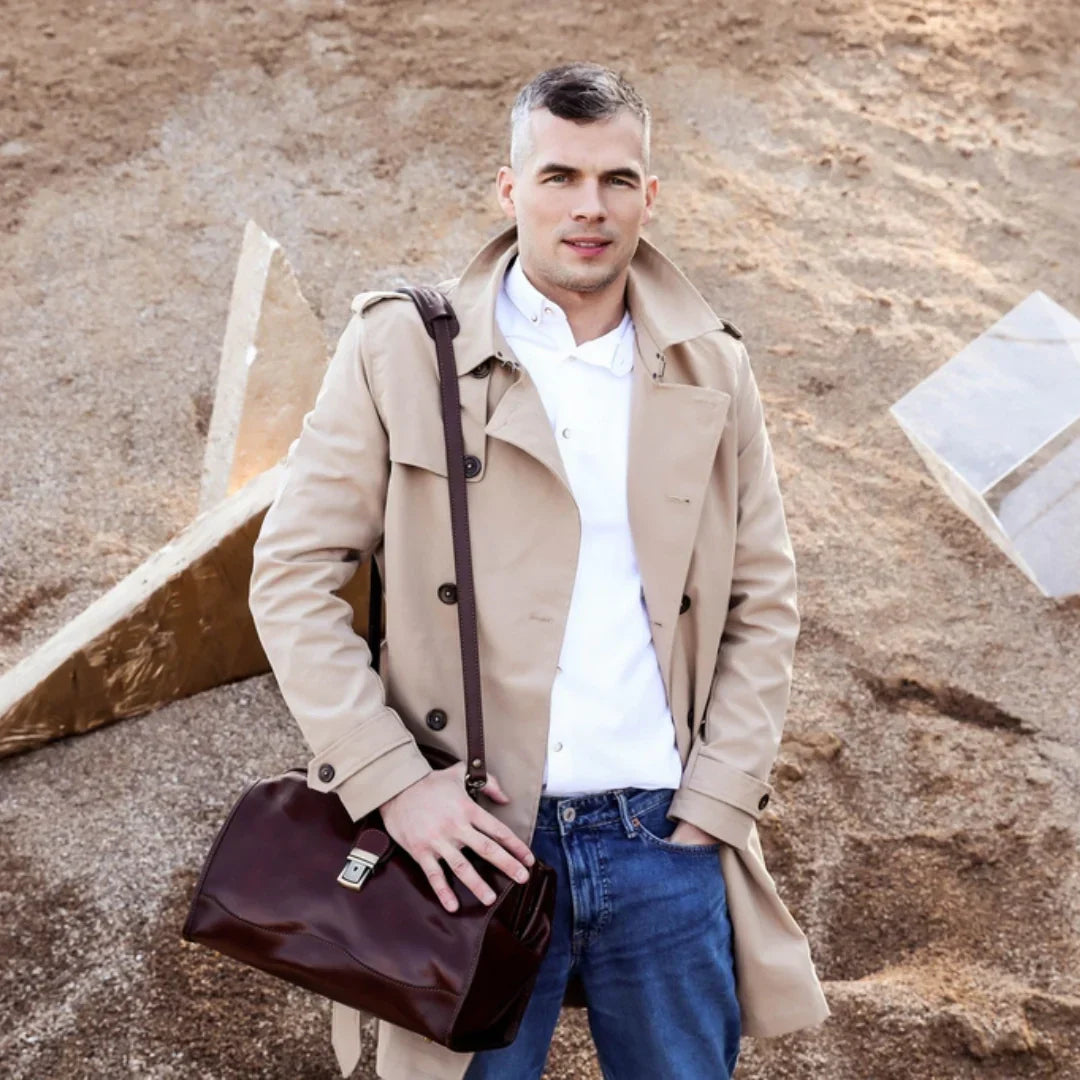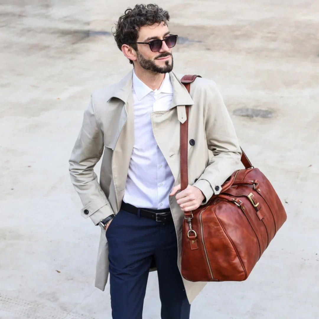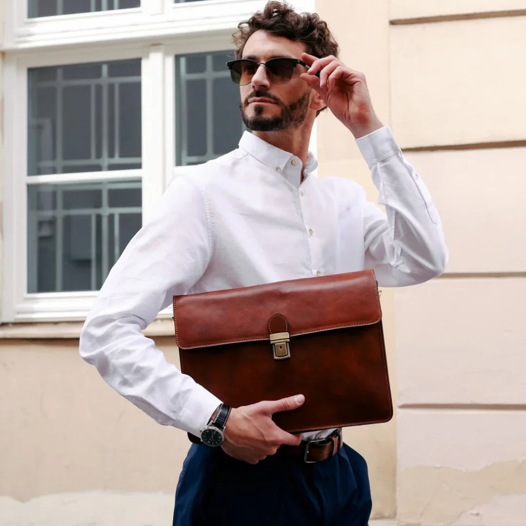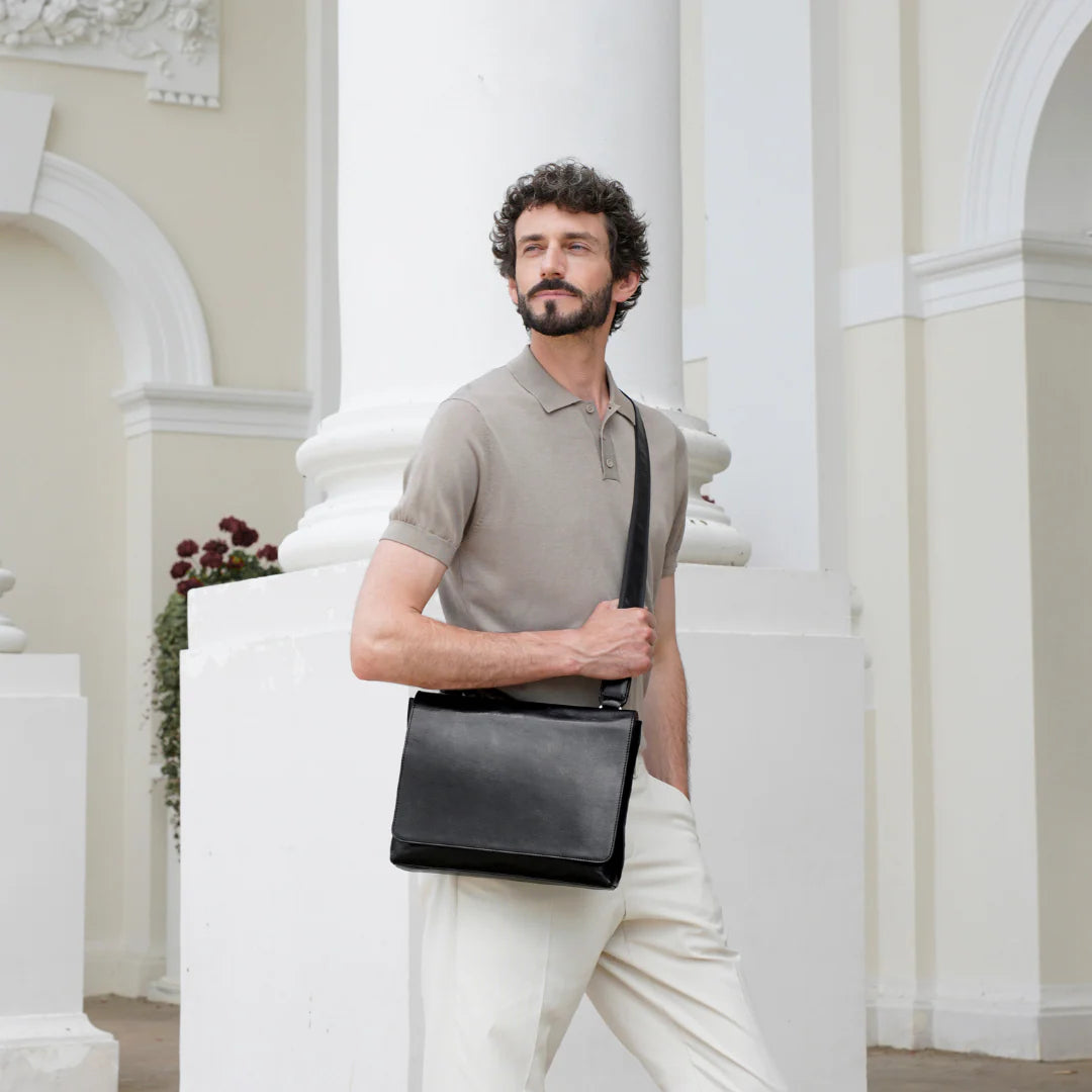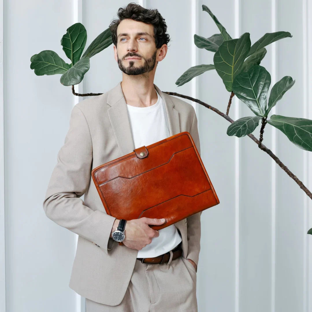This spring, we invite you to experience a new kind of love: a love between you and your bag. Our latest photoshoot is a tribute to this special bond that transcends time and space. Our leather bags are more than just accessories. They are companions, confidants, and soulmates. They reflect your inner beauty and express your outer style. They are with you through thick and thin, through joy and sorrow, through work and play. They are the ones who make you feel alive and complete. Our photoshoot captures the magic of spring: the freshness of the air, the warmth of the sun, the vibrancy of the city. The model is a vision of elegance and charm, wearing a suit that matches his bags and his mood. The background is a stunning contrast of light and dark, with subtle touches of modernity and history. The photoshoot is a romance between you and your bag. It shows that you don’t need anyone else to make you happy. You just need yourself and your bag. So go ahead and indulge in a spring fling with our leather bags.