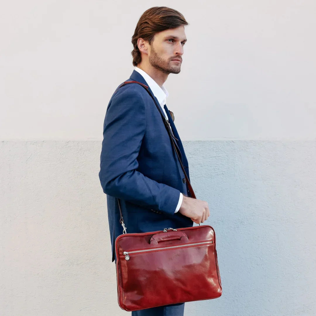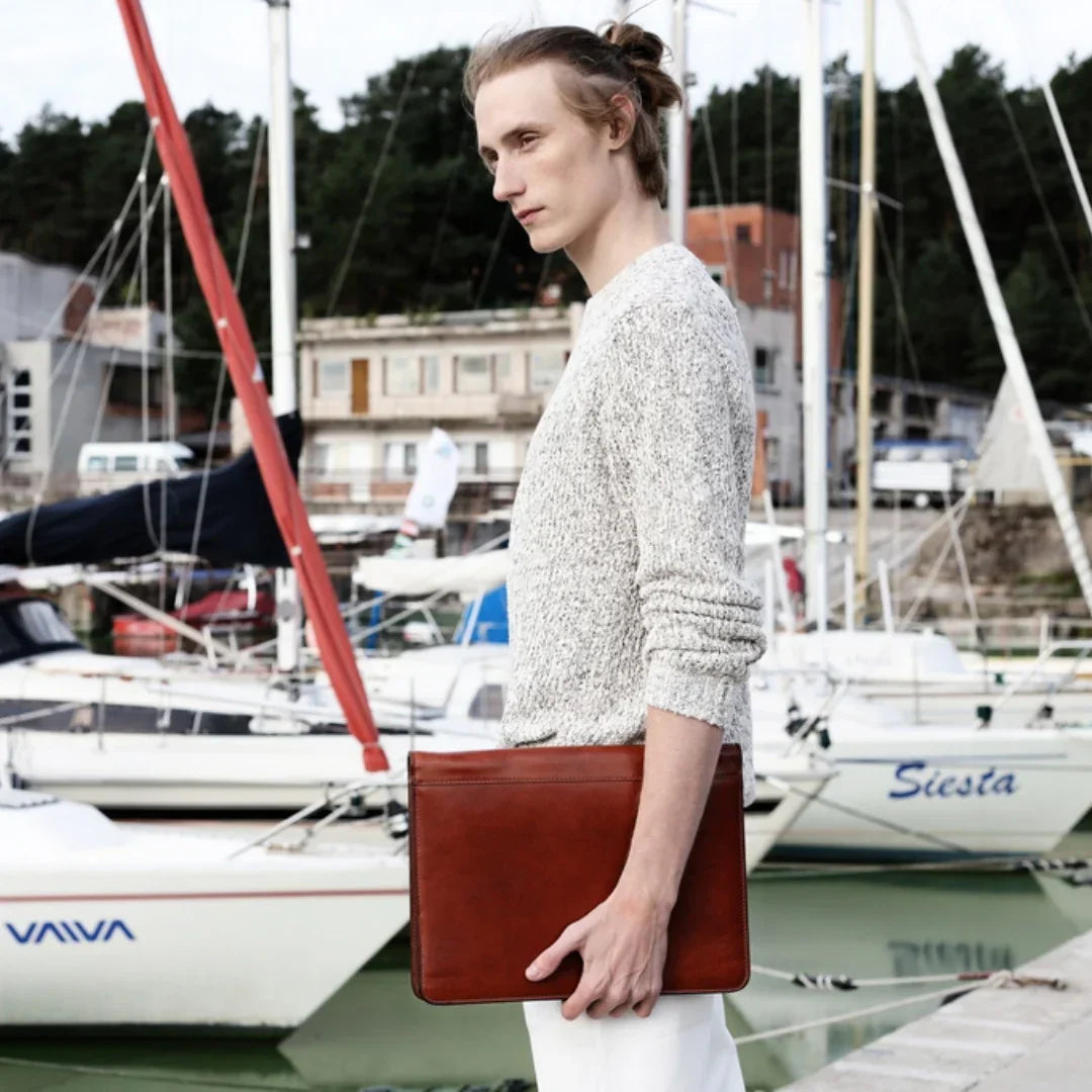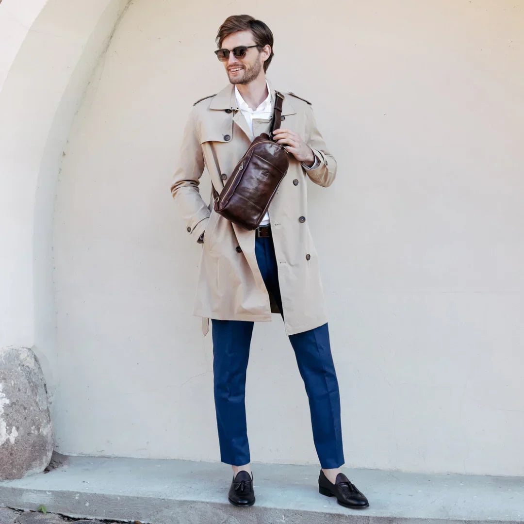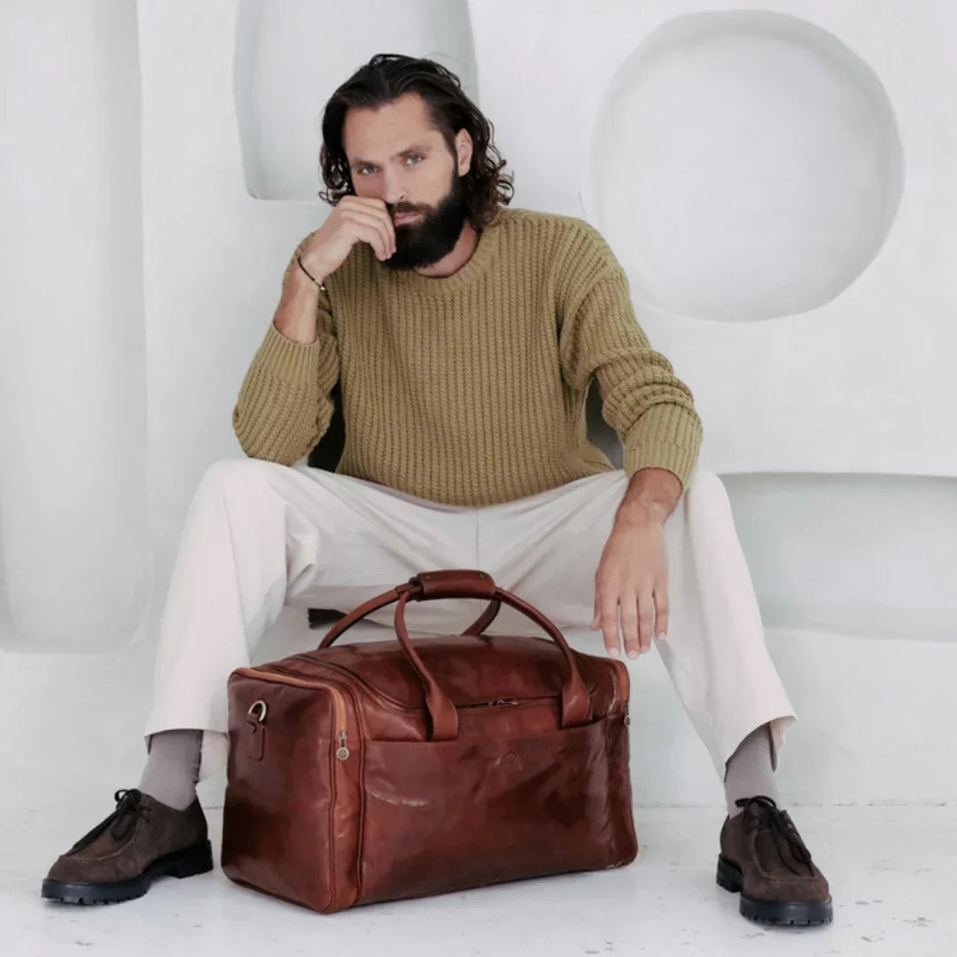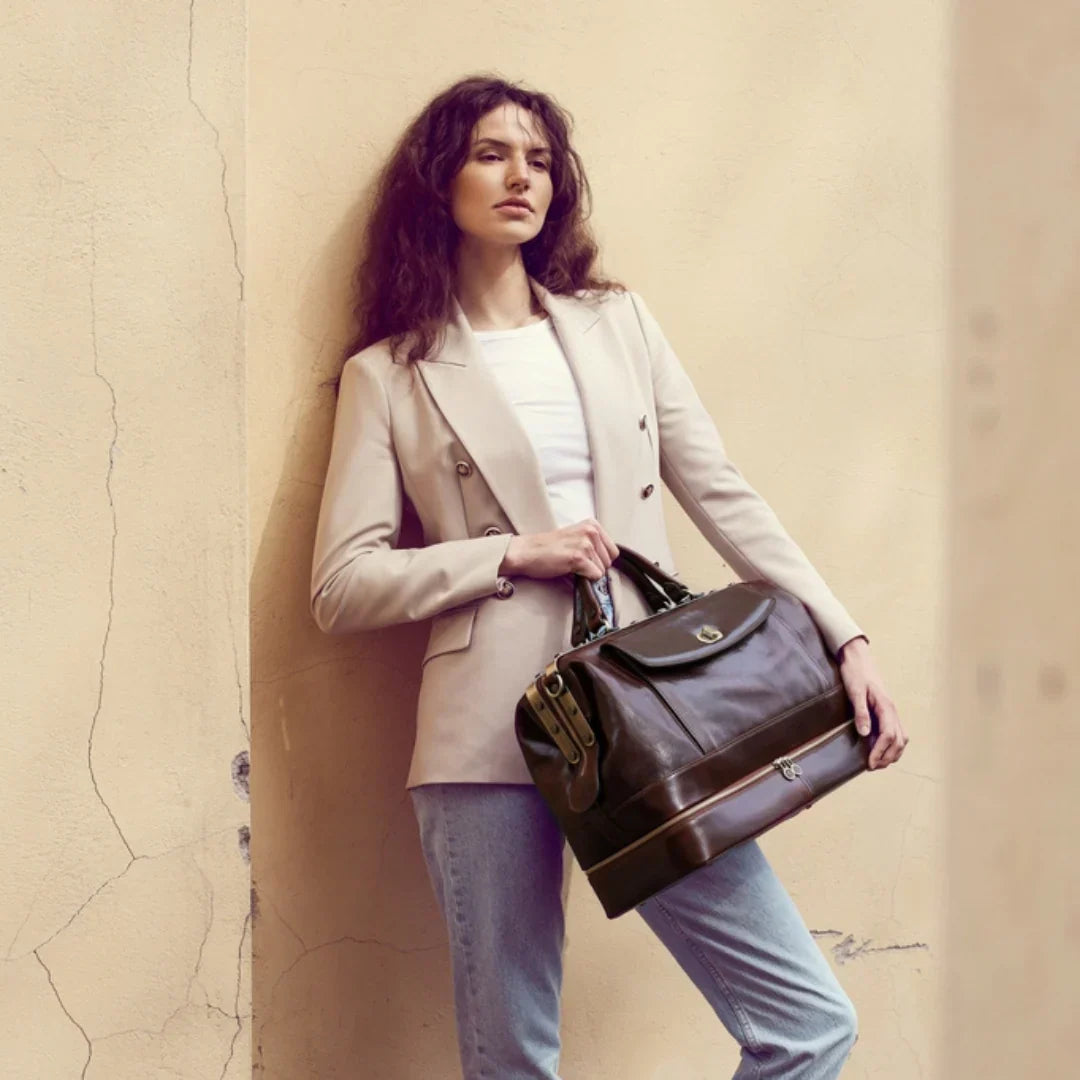 This spring, we invite you to experience a new kind of love: a love between you and your bag. Our latest photoshoot is a tribute to this special bond that transcends time and space. Our leather bags are more than just accessories. They are companions, confidants, and soulmates. They reflect your inner beauty and express your outer style. They are with you through thick and thin, through joy and sorrow, through work and play. They are the ones who make you feel alive and complete. Our photoshoot captures the magic of spring: the freshness of the air, the warmth of the sun, the vibrancy of the city. The model is a vision of elegance and charm, wearing a suit that matches his bags and his mood. The background is a stunning contrast of light and dark, with subtle touches of modernity and history. The photoshoot is a romance between you and your bag. It shows that you don’t need anyone else to make you happy. You just need yourself and your bag. So go ahead and indulge in a spring fling with our leather bags.