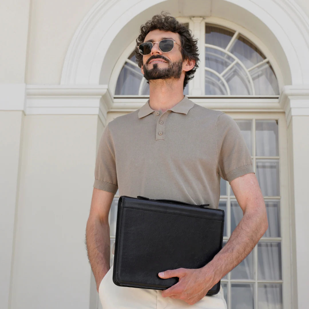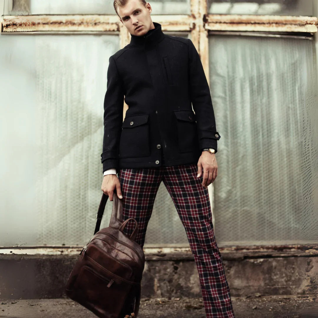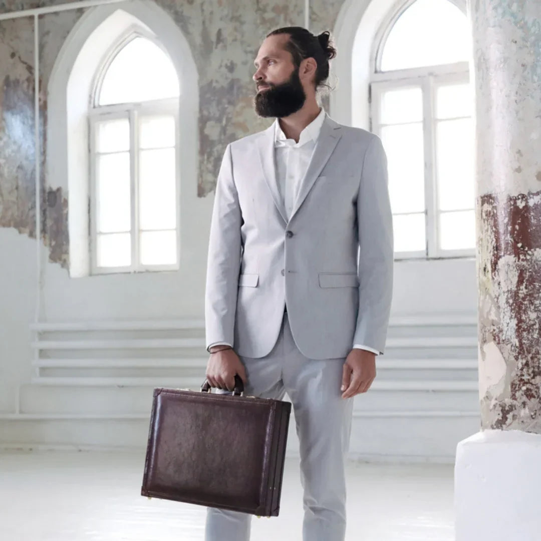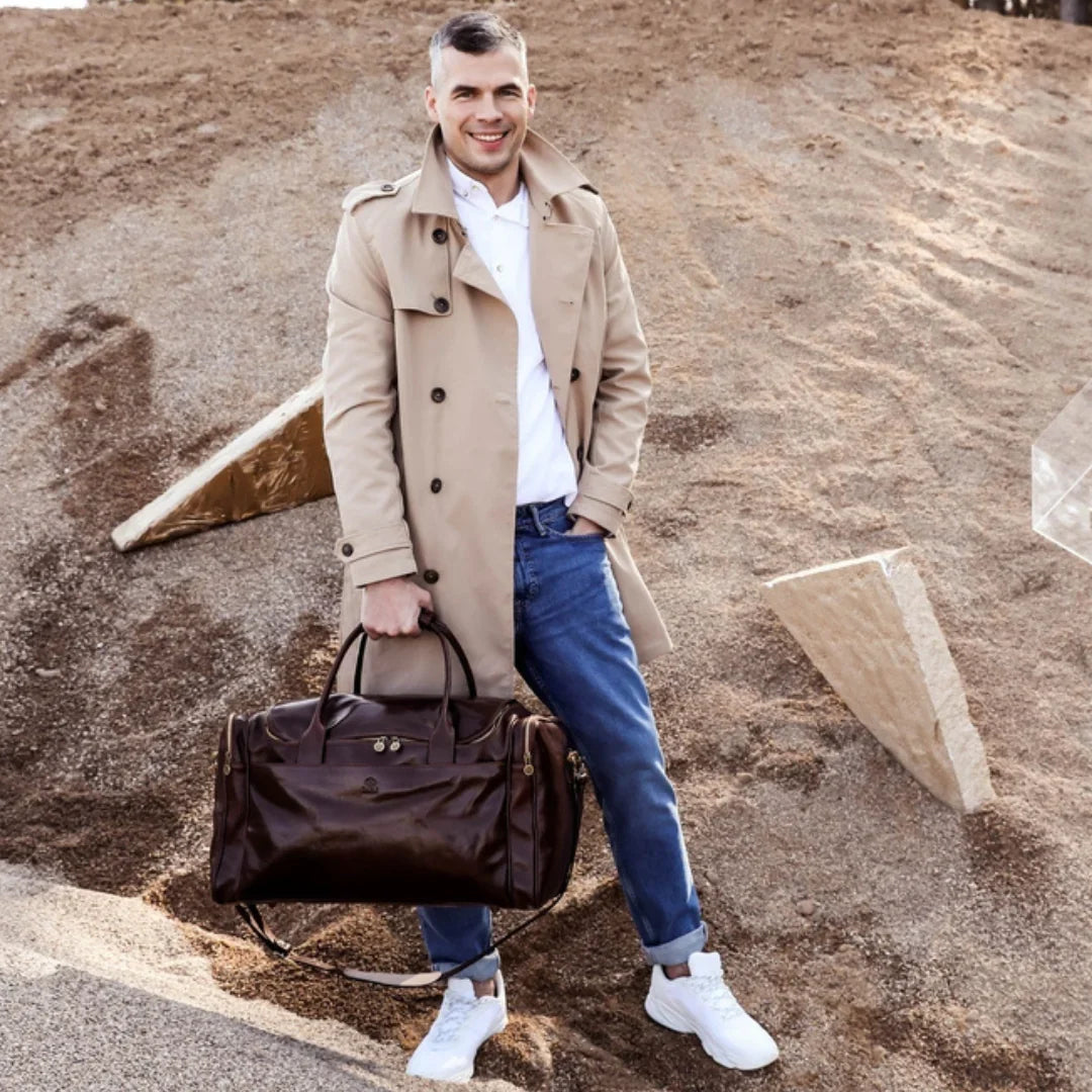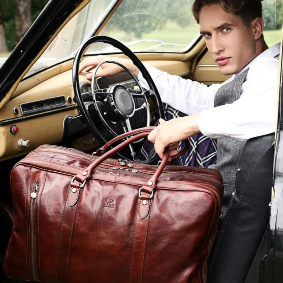 This spring, we invite you to experience a new kind of love: a love between you and your bag. Our latest photoshoot is a tribute to this special bond that transcends time and space. Our leather bags are more than just accessories. They are companions, confidants, and soulmates. They reflect your inner beauty and express your outer style. They are with you through thick and thin, through joy and sorrow, through work and play. They are the ones who make you feel alive and complete. Our photoshoot captures the magic of spring: the freshness of the air, the warmth of the sun, the vibrancy of the city. The model is a vision of elegance and charm, wearing a suit that matches his bags and his mood. The background is a stunning contrast of light and dark, with subtle touches of modernity and history. The photoshoot is a romance between you and your bag. It shows that you don’t need anyone else to make you happy. You just need yourself and your bag. So go ahead and indulge in a spring fling with our leather bags.