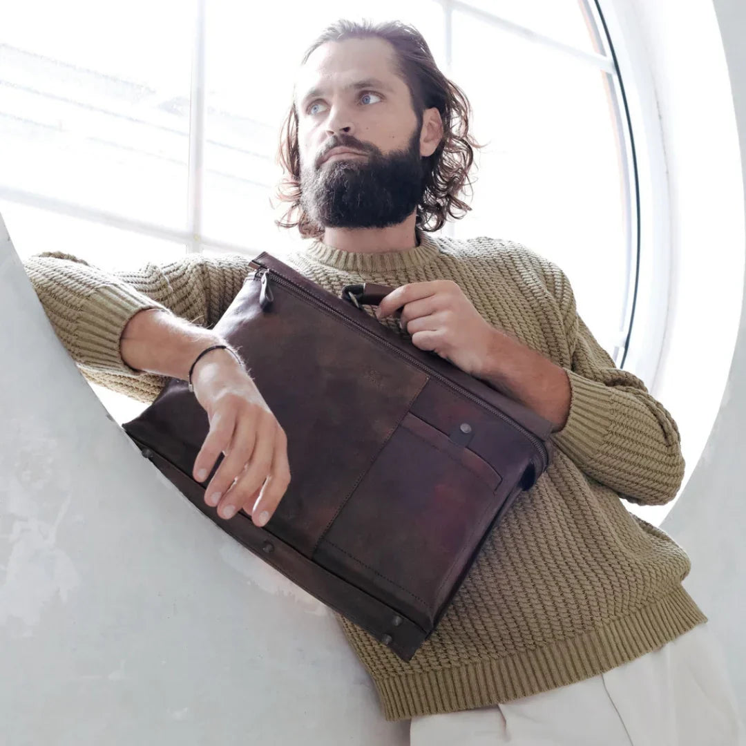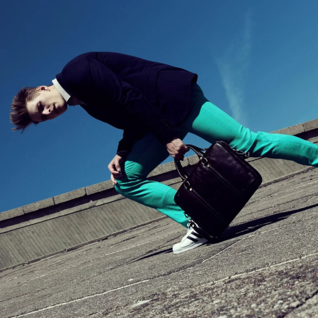 We have always believed that classy leather bags are not for only stuffy business man, cool guys can wear them as well without loosing their swag. This is what we tried to prove with the photoshoot called Opposites Attract. Some shoots were taken in an old manor and the classic design doctor bags really brought us back in time for a moment. Then we moved to a skating park near some office buildings where many young guys like our handsome model actually work. The bags really accustomed to the new habitat and transformed the man into an edgy millennial.