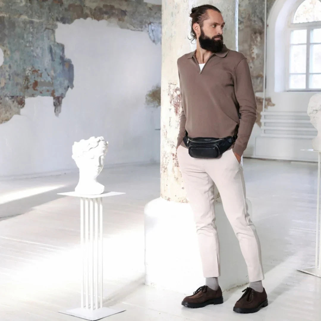 Inspired by the harmony between the raw beauty of leather and contemporary elements, we focused on the interplay of textures. The studio's large windows and concrete details created a captivating atmosphere, emphasizing beautiful shapes and adding depth to each frame. This collection tells a story of a confident individual navigating the urban landscape, seamlessly integrating our leather accessories into a lifestyle that embraces modernity, elegance, and versatility. The result is a visually striking narrative that invites our audience into the artistic and contemporary world we've crafted.