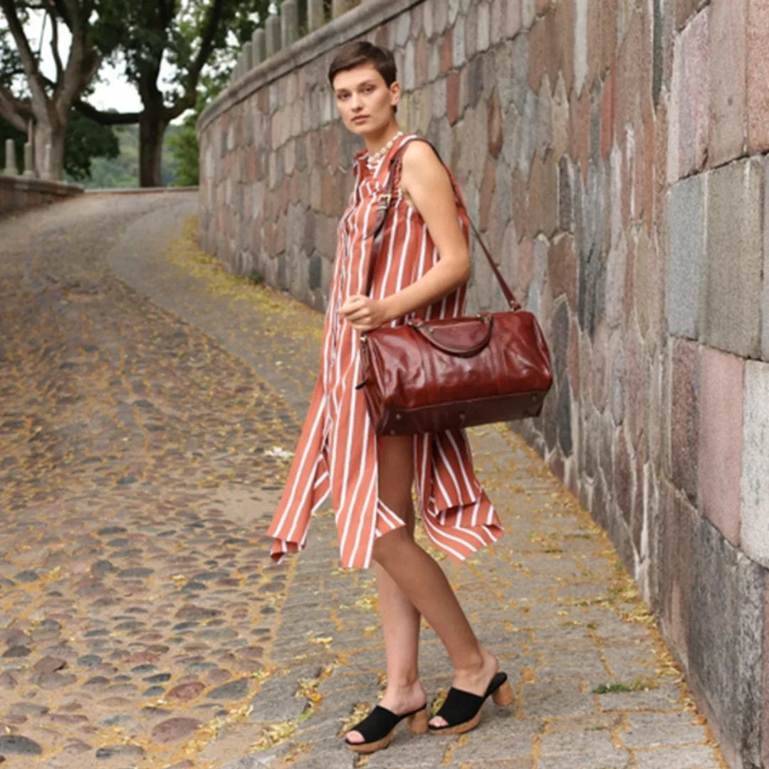 Our latest photoshoot Serenity is designed to capture the essence of summer. The photoshoot features one of our favorite models Edvina who is the embodiment of this notion. The photoshoot is meant to evoke feelings of warmth, happiness, and relaxation. We have used a variety of artistic techniques to capture the essence of summer in our leather bags. The photoshoot features a range of colors that are reminiscent of the summer season. We have also used lighting techniques to create a warm and inviting atmosphere that is perfect for summer. We hope our artistic take on the summer season and our leather bags will impress you.