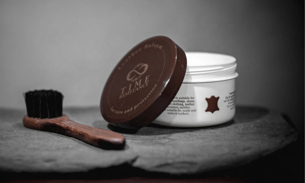When you purchase a Time Resistance bag, you have the option of also purchasing our leather balsam. This specially formulated balsam is designed to care for and maintain the beauty of your leather, ensuring it remains a cherished companion for years to come.