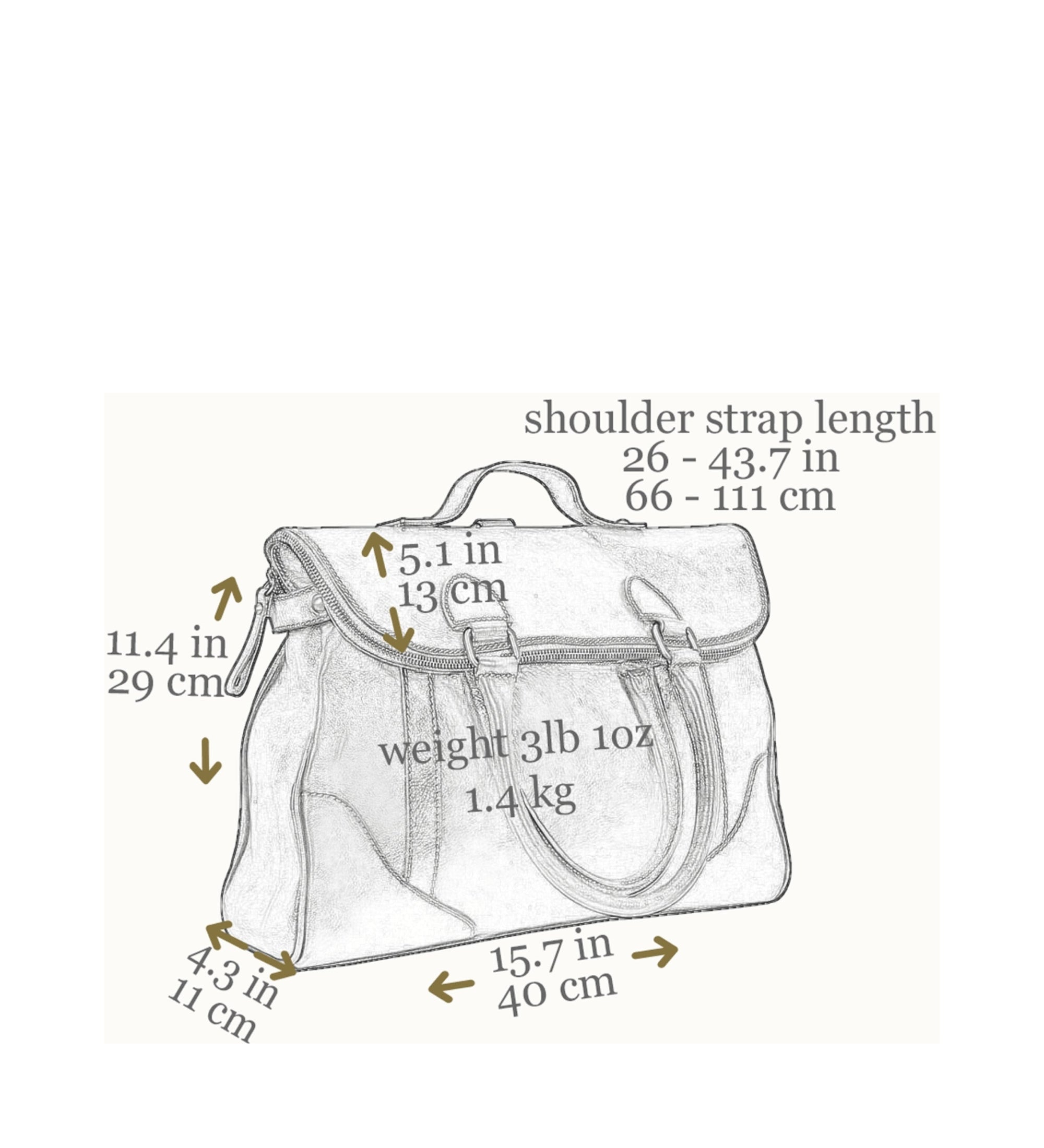 Detachable straps adjustable in length to carry on shoulder or turn into a backpack