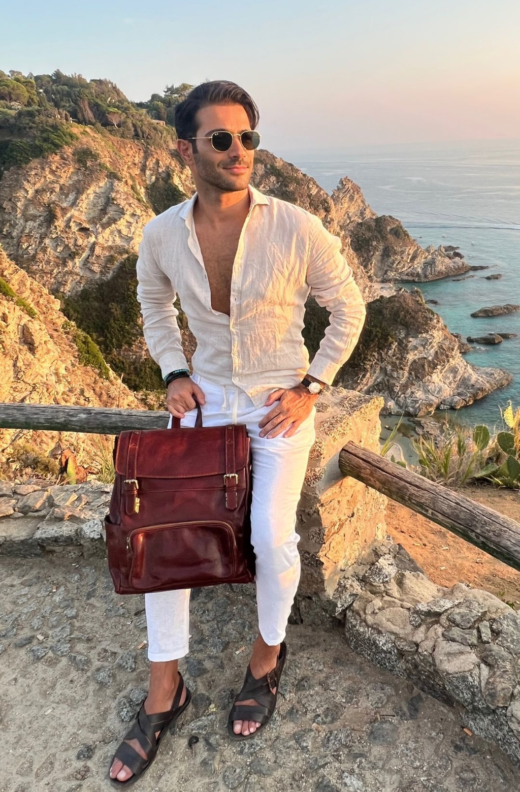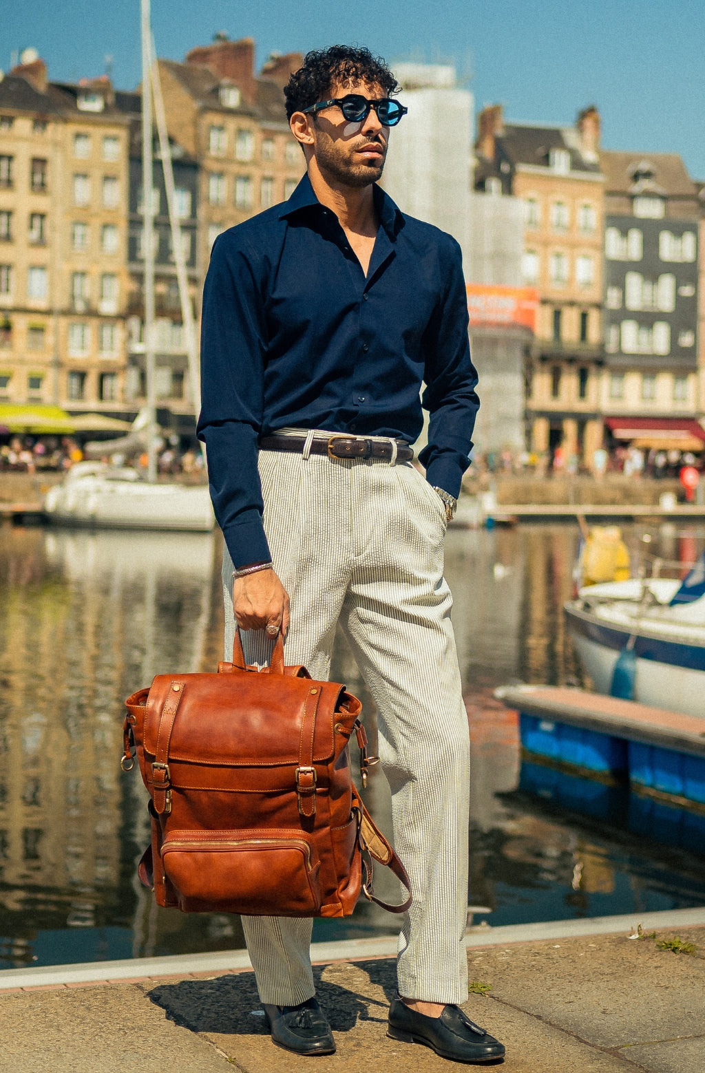 A rustic style Italian leather backpack The Good Earth is for a stylish traveler. So spacious it fits all the essentials of a backpacker and then some. Designed in Italy this full-grain leather backpack ensures maximum security of your belongings with two push-button closures and a working key and a zipped pocket right at your back. Time Resistance premium quality leather backpack is a perfect marriage between practicality, comfort, and luxury.