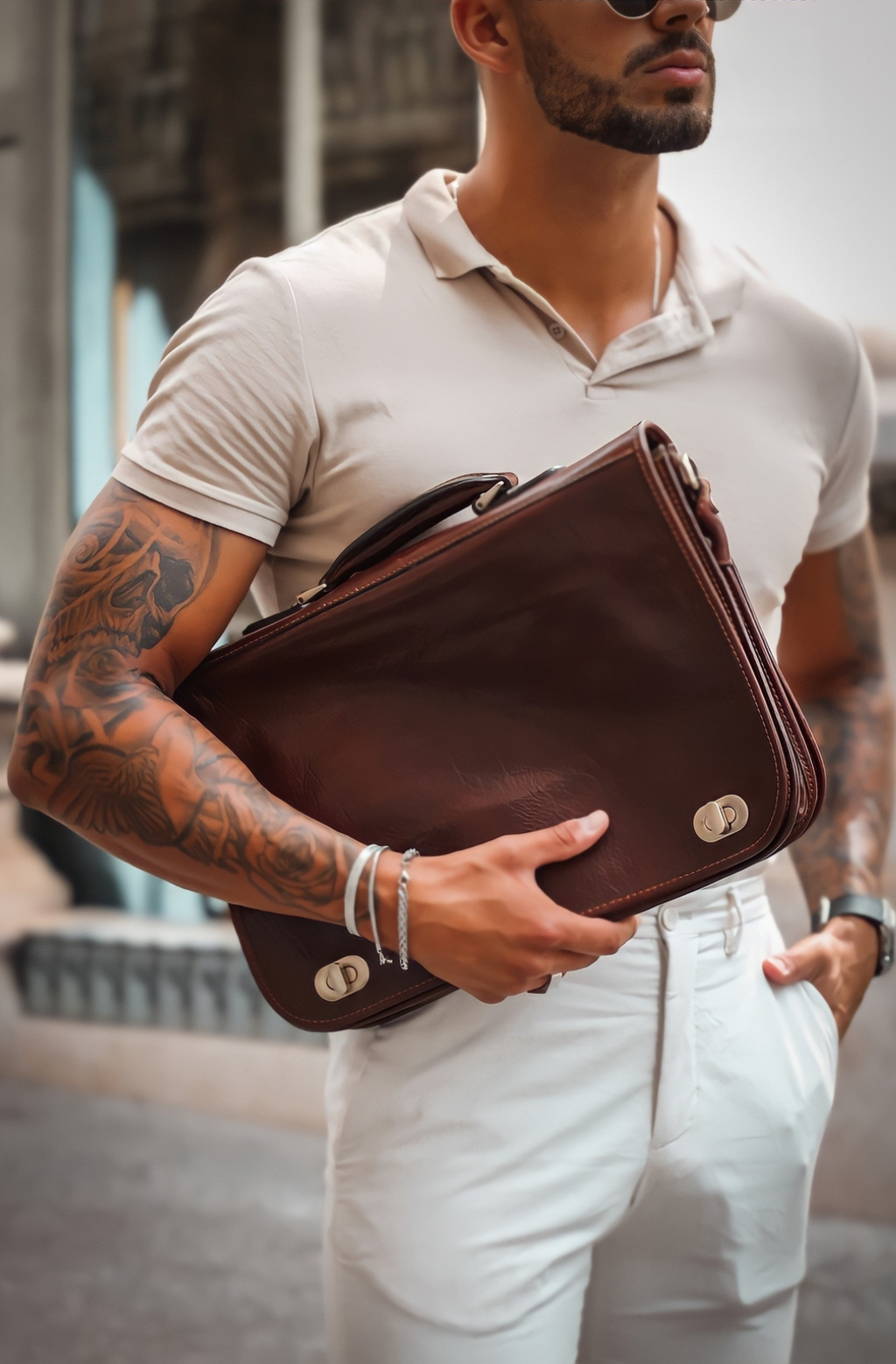 Time Resistance bags are crafted from premium full-grain, hand-dyed, vegetable-tanned Italian cowhide, known as Vachetta leather, which develops a beautiful patina.