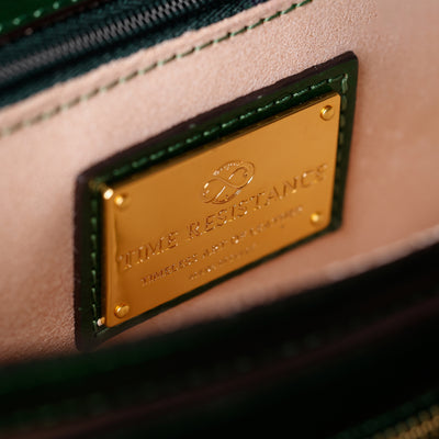 Time Resistance bags and accessories are crafted from premium full-grain, hand-dyed, vegetable-tanned Italian cowhide, known as Vachetta leather, which develops a beautiful patina and ages gracefully over time.