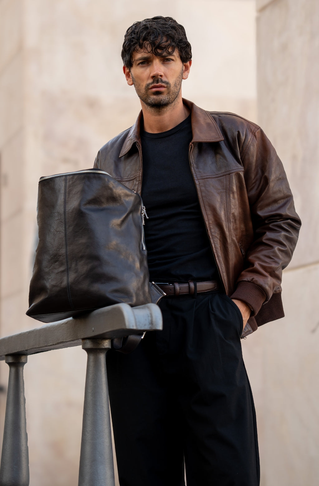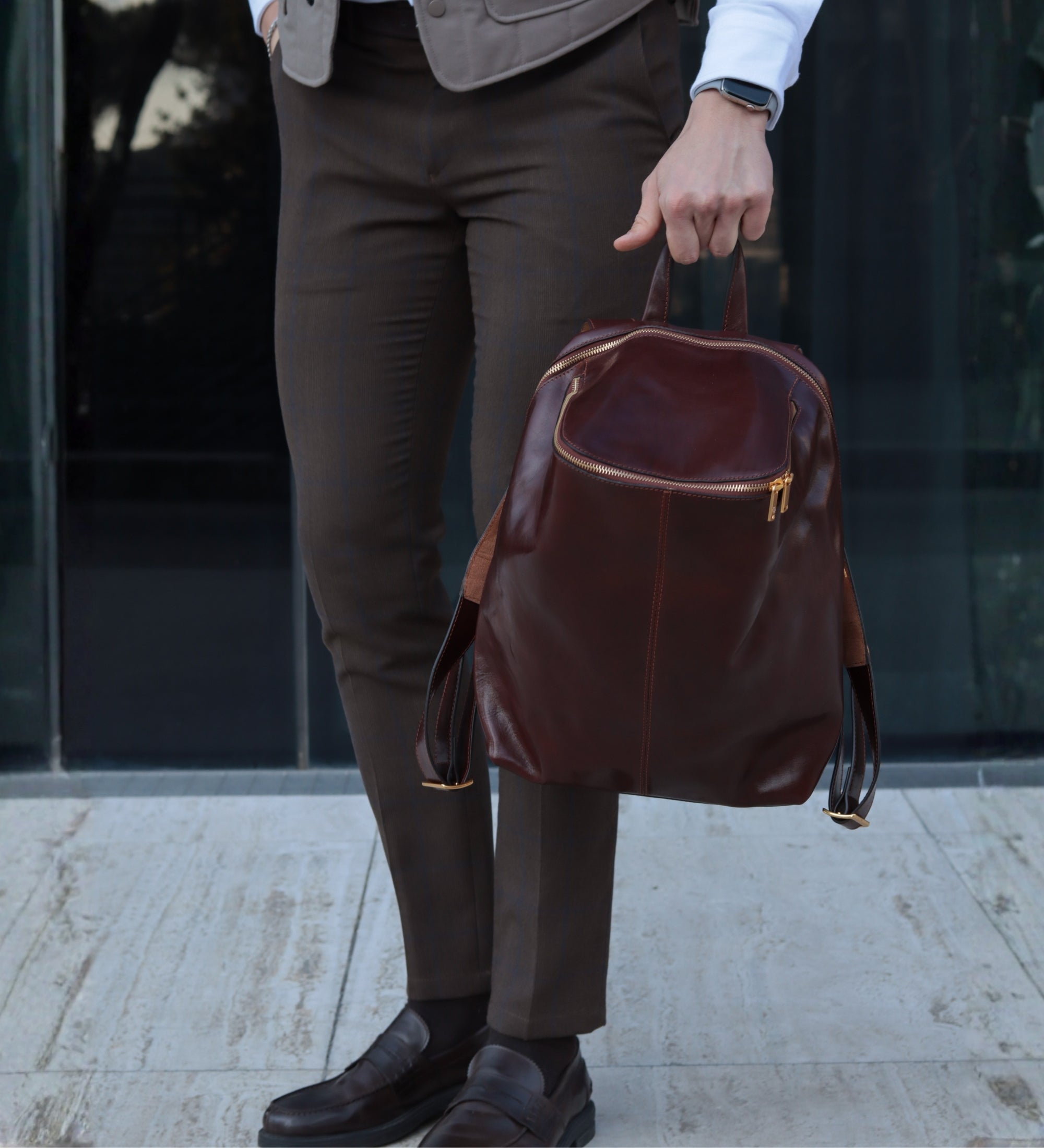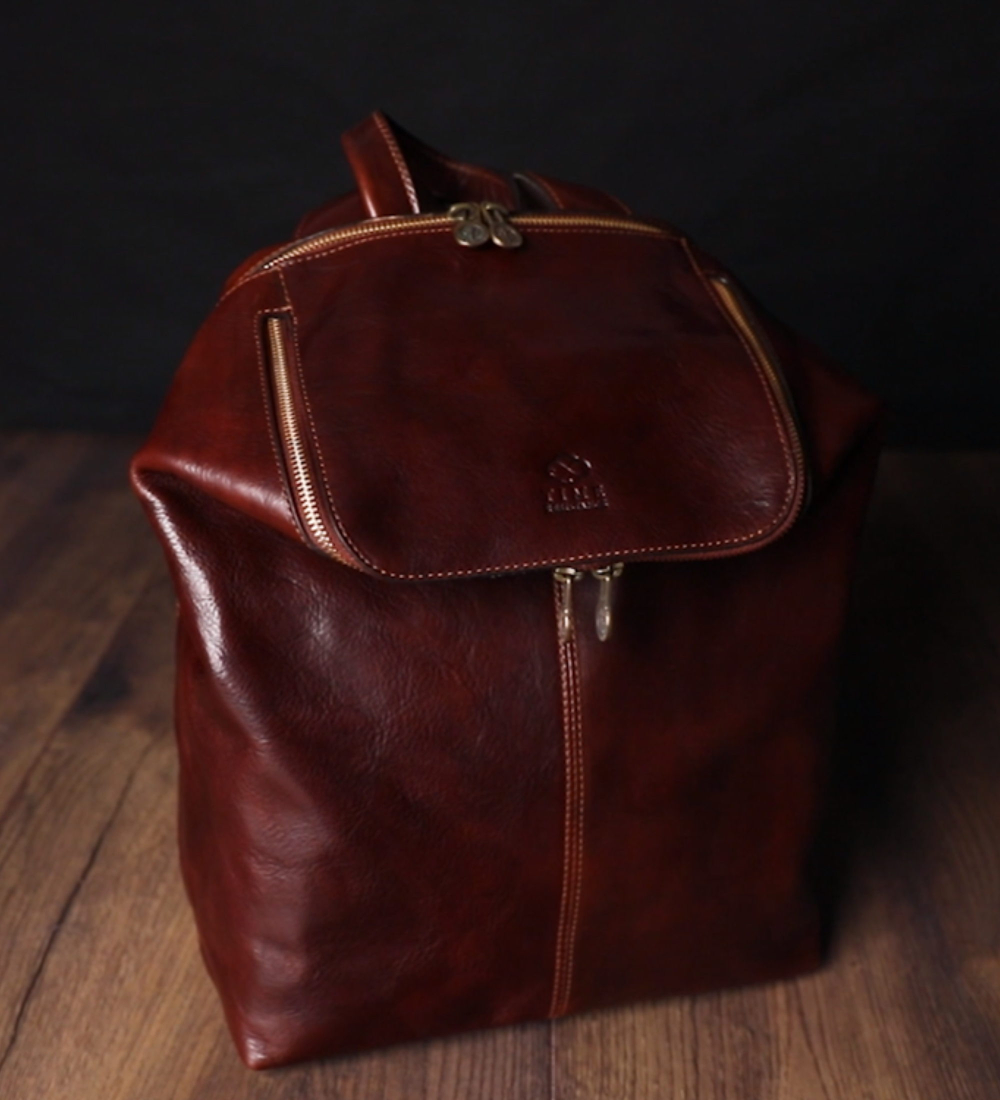 A unique Origami inspired Italian leather backpack A Bend in the River represents our vision in design and function: it is clean yet intricate. Born in the heart of Italy this full-grain leather beauty is a worthy contender in the backpack world. More function, more quality, more travel!