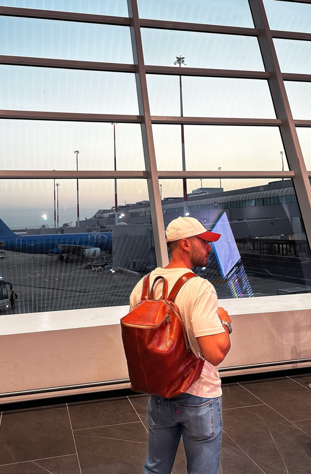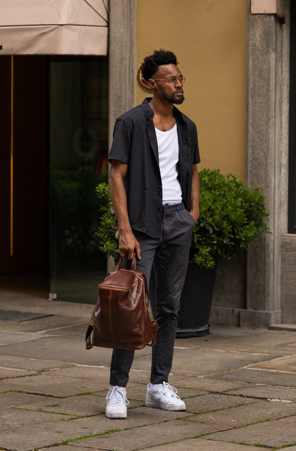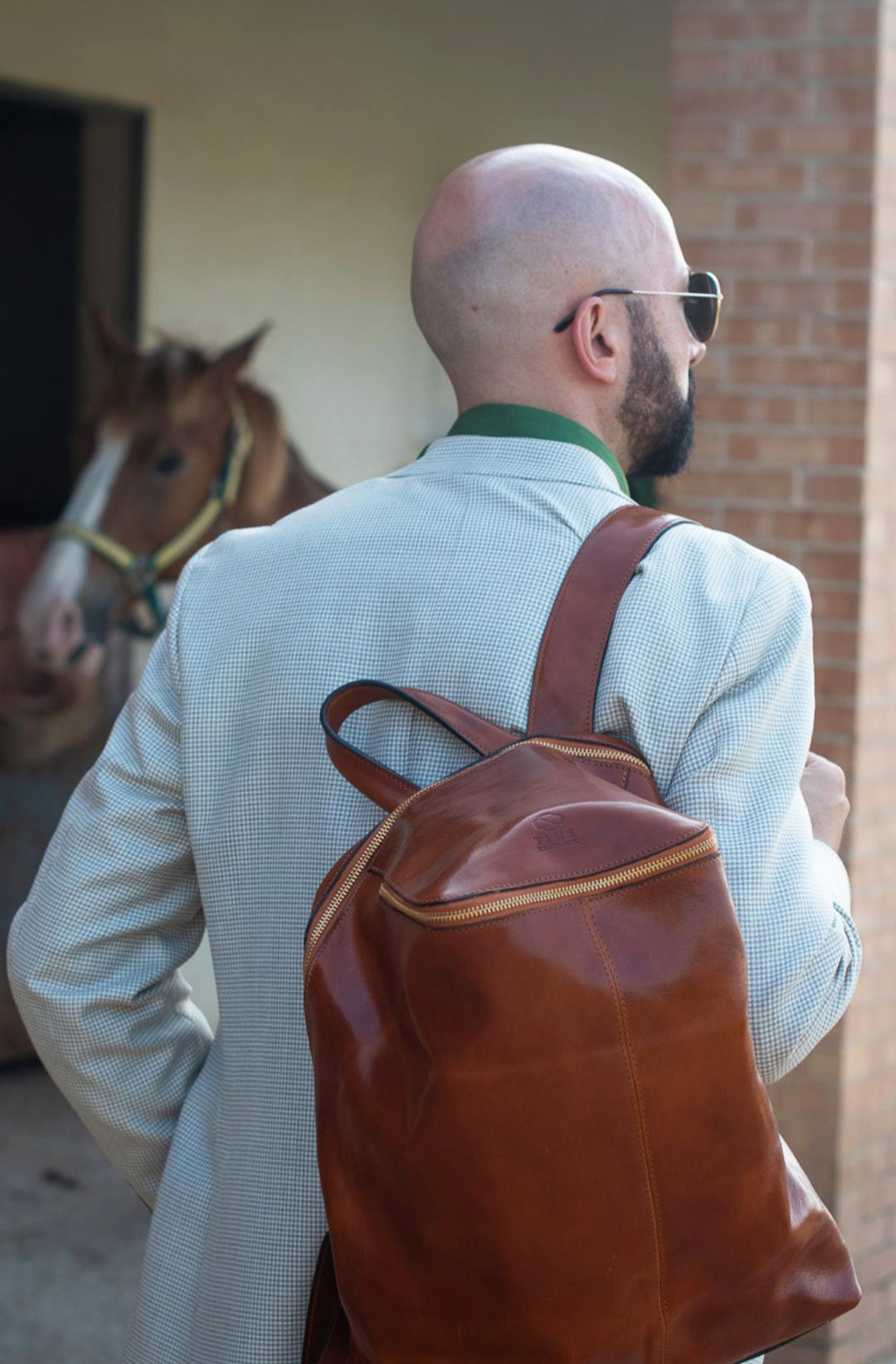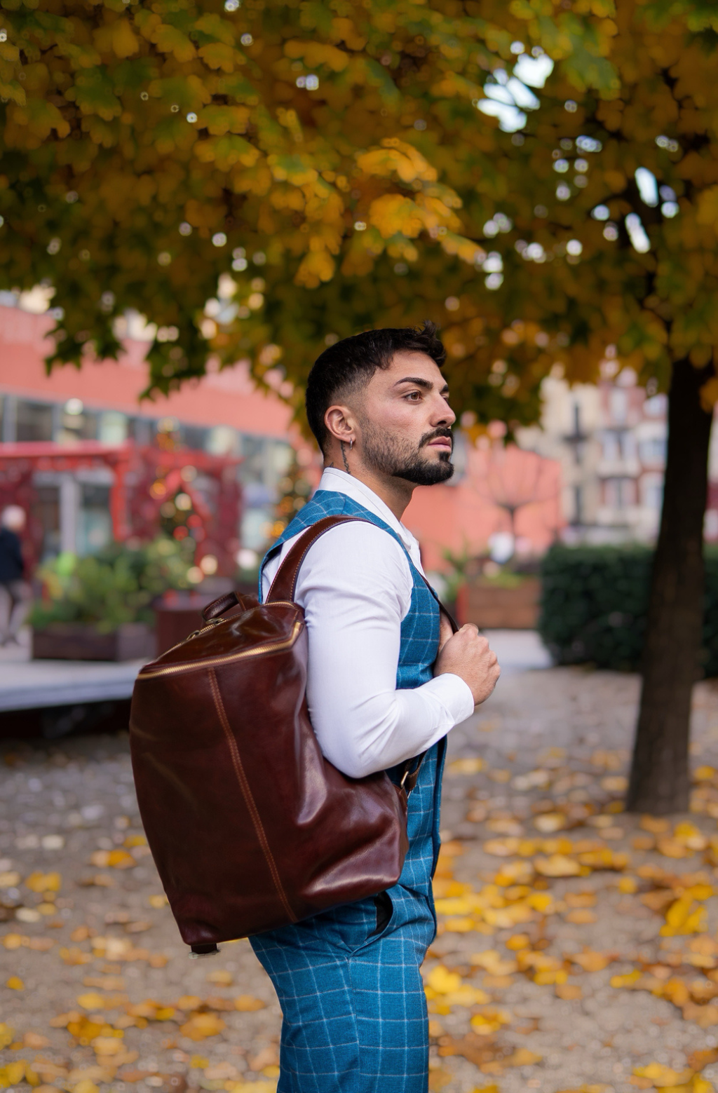 A unique Origami inspired Italian leather backpack A Bend in the River represents our vision in design and function: it is clean yet intricate. Born in the heart of Italy this full-grain leather beauty is a worthy contender in the backpack world. More function, more quality, more travel!