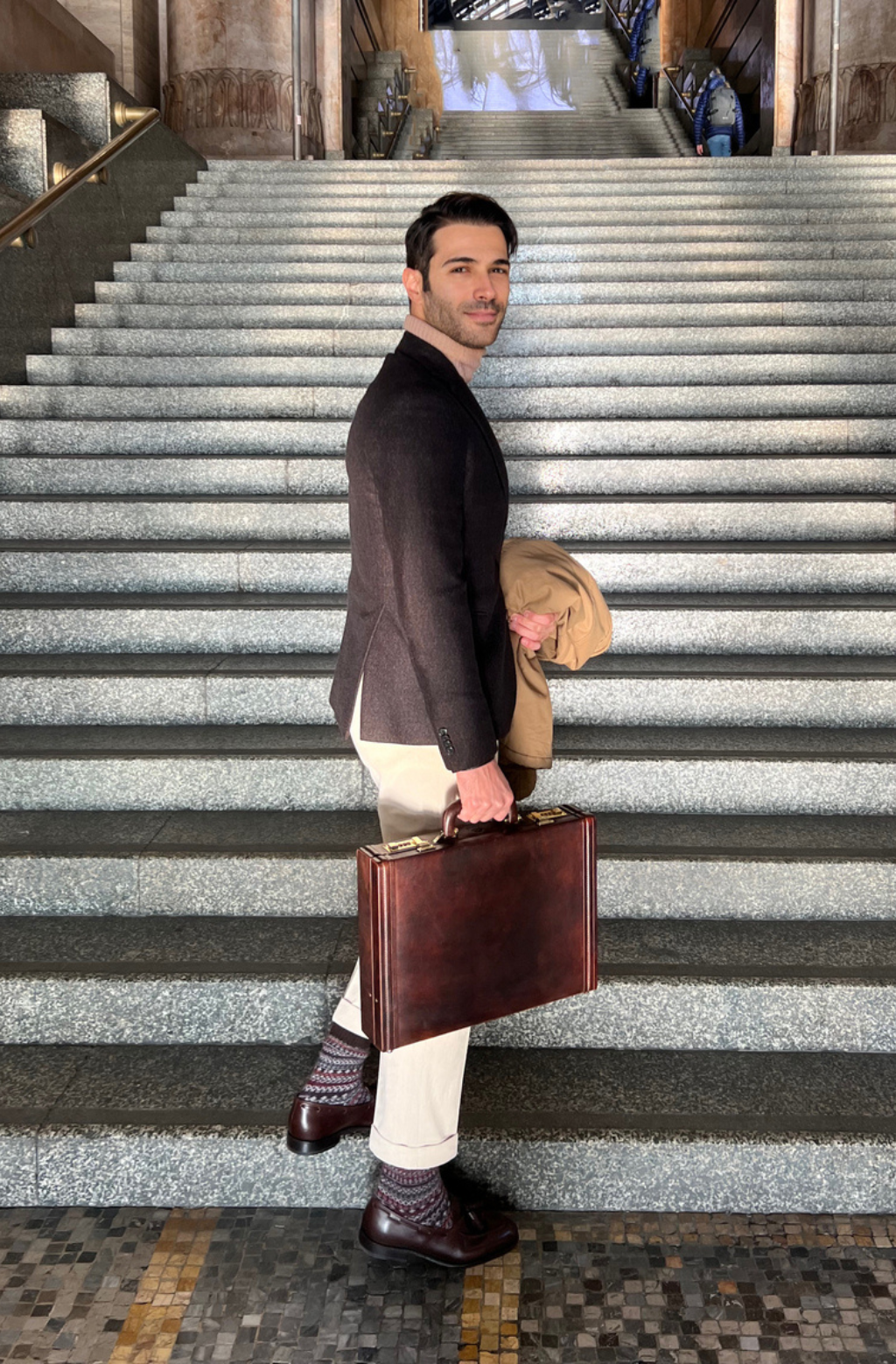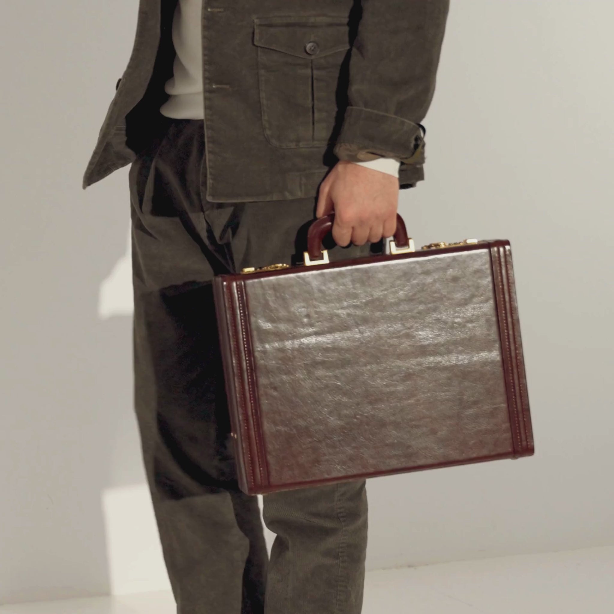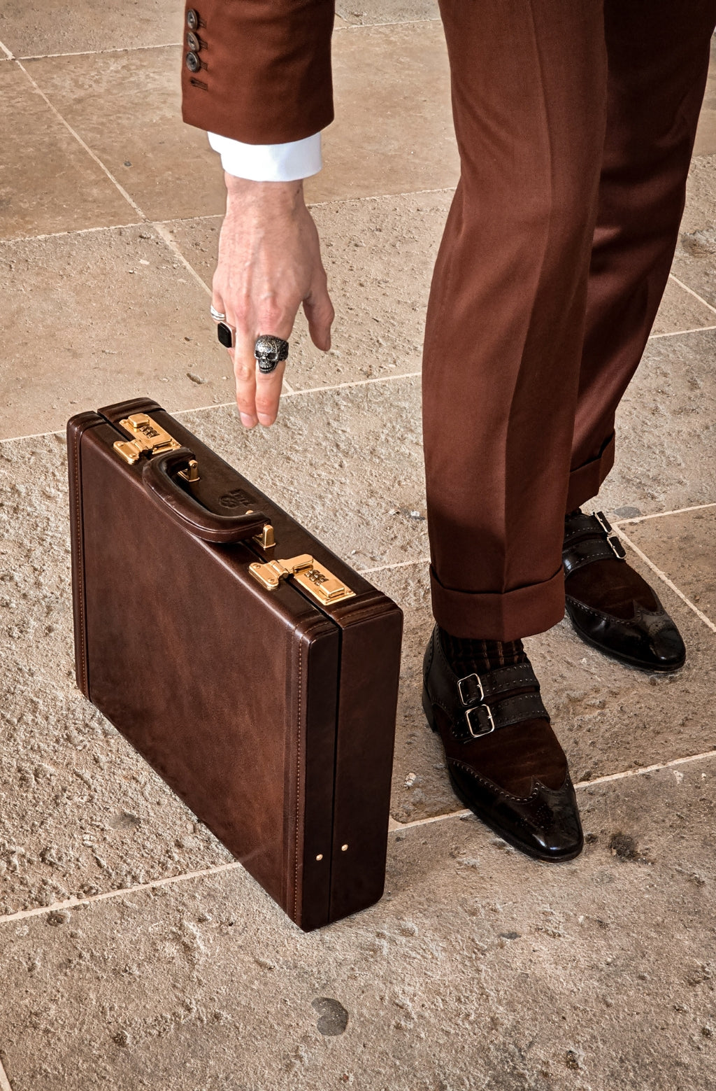 This premium leather attaché case is the perfect choice for the professional on the go. Expertly crafted from full-grain leather, this case features a classic design with plenty of room to securely store your laptop, documents, and other important items. The rich leather exterior is accented with gold color hardware, giving the bag a timeless look that will never go out of style. The interior is fully lined with a soft velvet. The combination lock provides additional security, giving you peace of mind that your items will stay safe and secure. Whether you're heading to the office or jet-setting around the world, this luxurious leather attaché case is the perfect companion.
