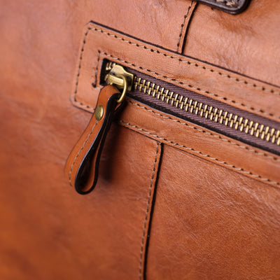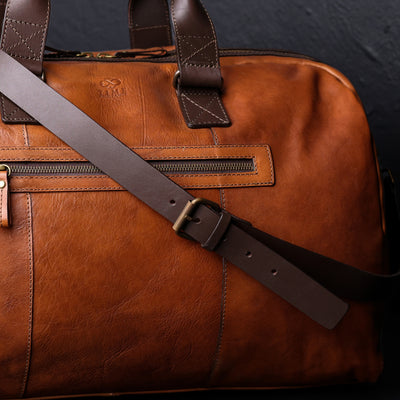 This bag is more than just a duffel. It’s a statement of elegance and simplicity, crafted from the finest full grain leather that feels soft and natural to the touch. It’s spacious enough to fit your laptop, clothes, and other essentials, but sleek enough to suit any occasion. Whether you’re jetting off for business or pleasure, this bag will make you feel confident and stylish. The bag features two smooth handles and a shoulder strap for your comfort, as well as a double zipper opening that lets you access your belongings with ease and flair. The zip pockets are both functional and fashionable, keeping your valuables safe and handy. With every use, this full grain leather duffel bag will develop a distinctive character.