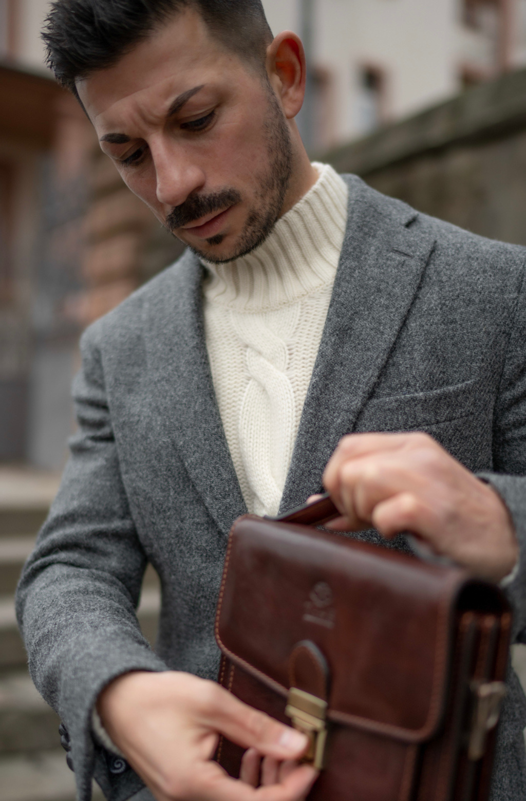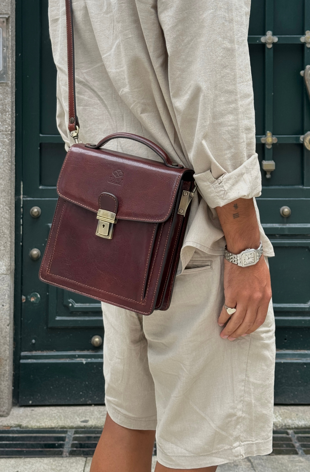 A perfect companion for the modern man. A small full-grain leather briefcase with a classic, timeless look and a sturdy frame for those who like to keep it light and leave the home office at home. But since you cannot fit your wallet, smartphone, keys, and now a tablet in the pockets of your pants, this is the bag that will accommodate those essentials that you can’t leave home without. This small and compact bag has the look of a classic business briefcase combined with the ease of carrying a messenger bag.