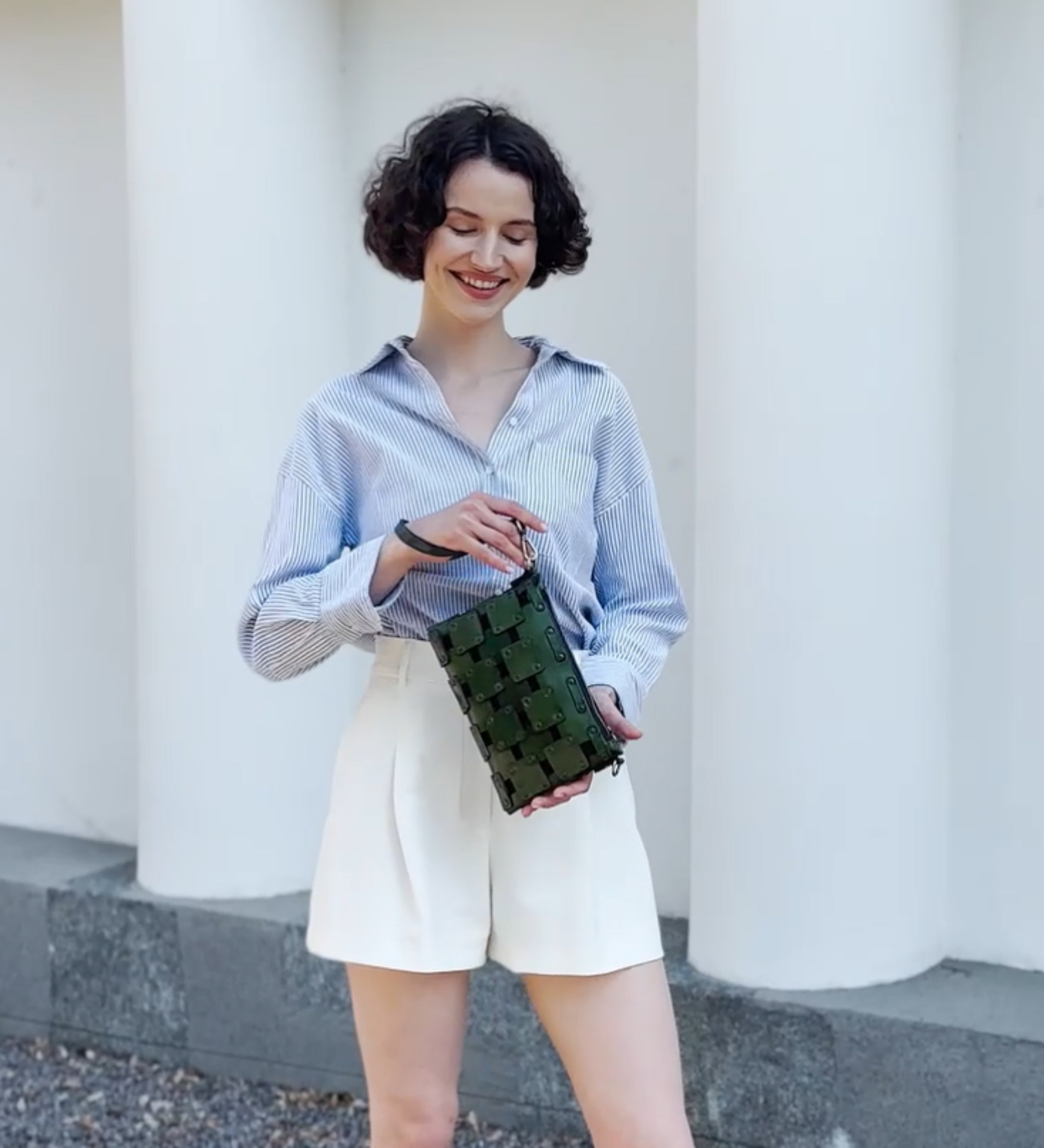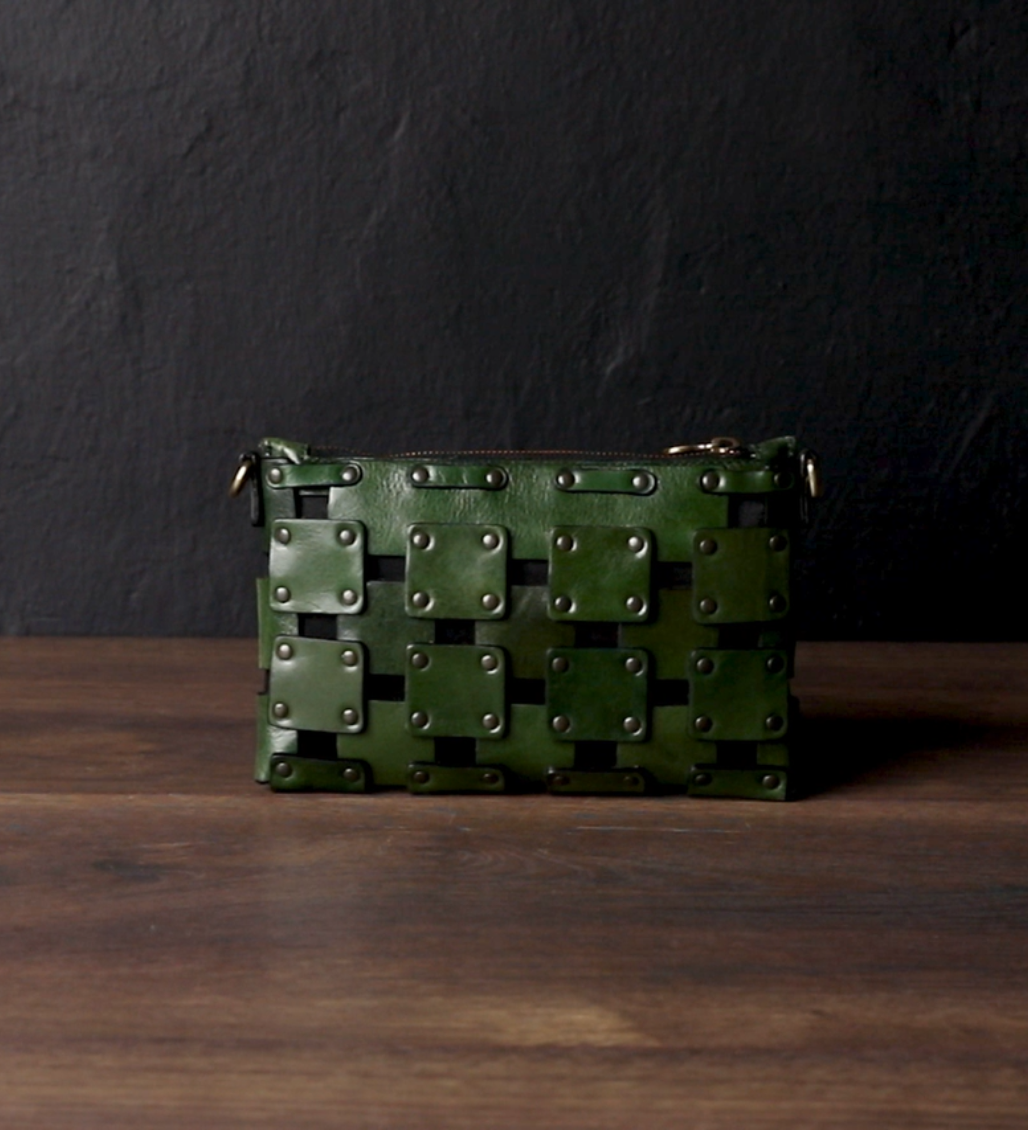 Unique design leather clutch for a charismatic woman. This edgy style leather wrist bag is spacious enough for all the essentials including your smartphone, keys and some cash. Use it on normal occasions with casual or formal clothing. The clutch is also perfect for carrying it as a crossbody bag or shoulder bag. Complete with a detachable wrist strap.